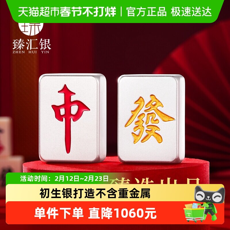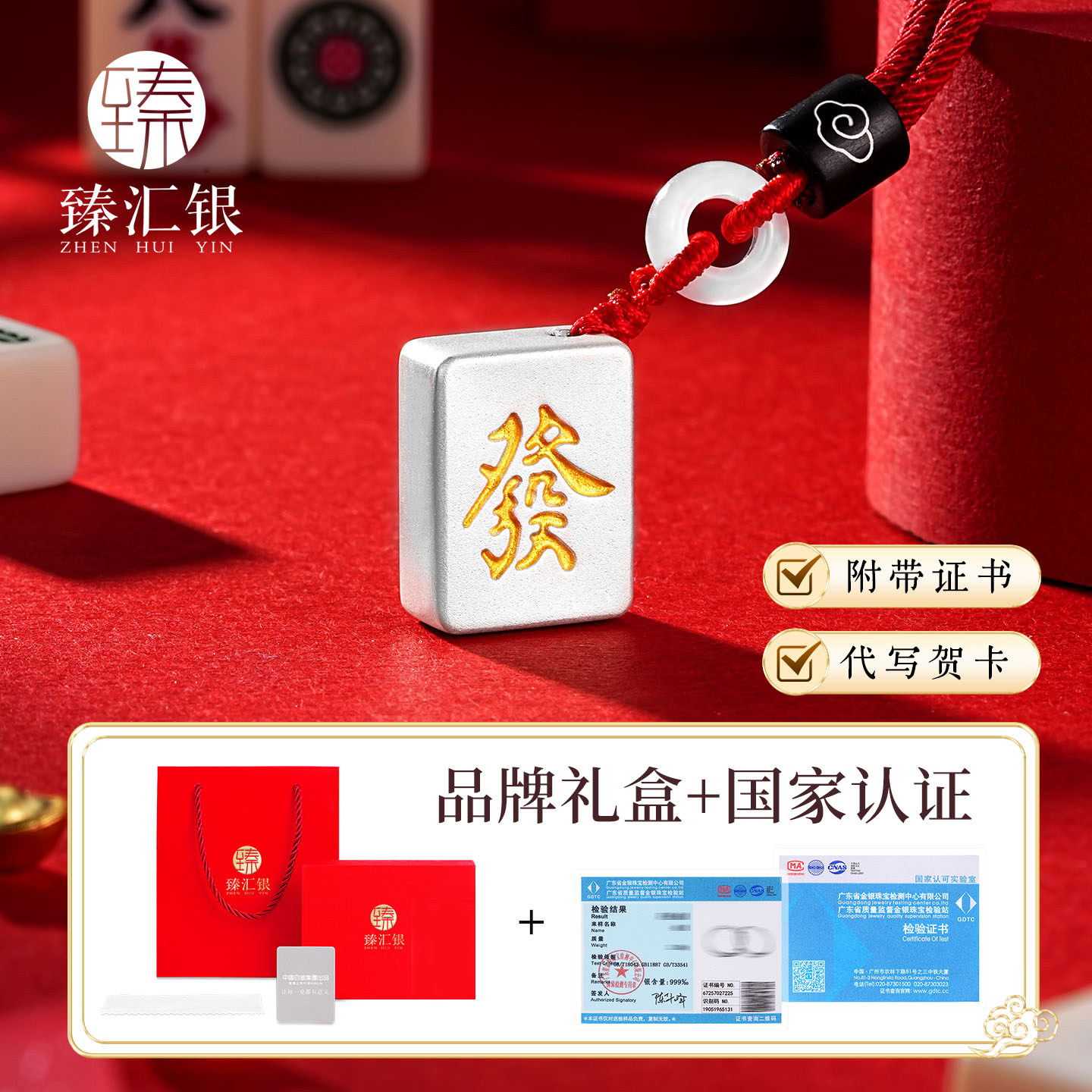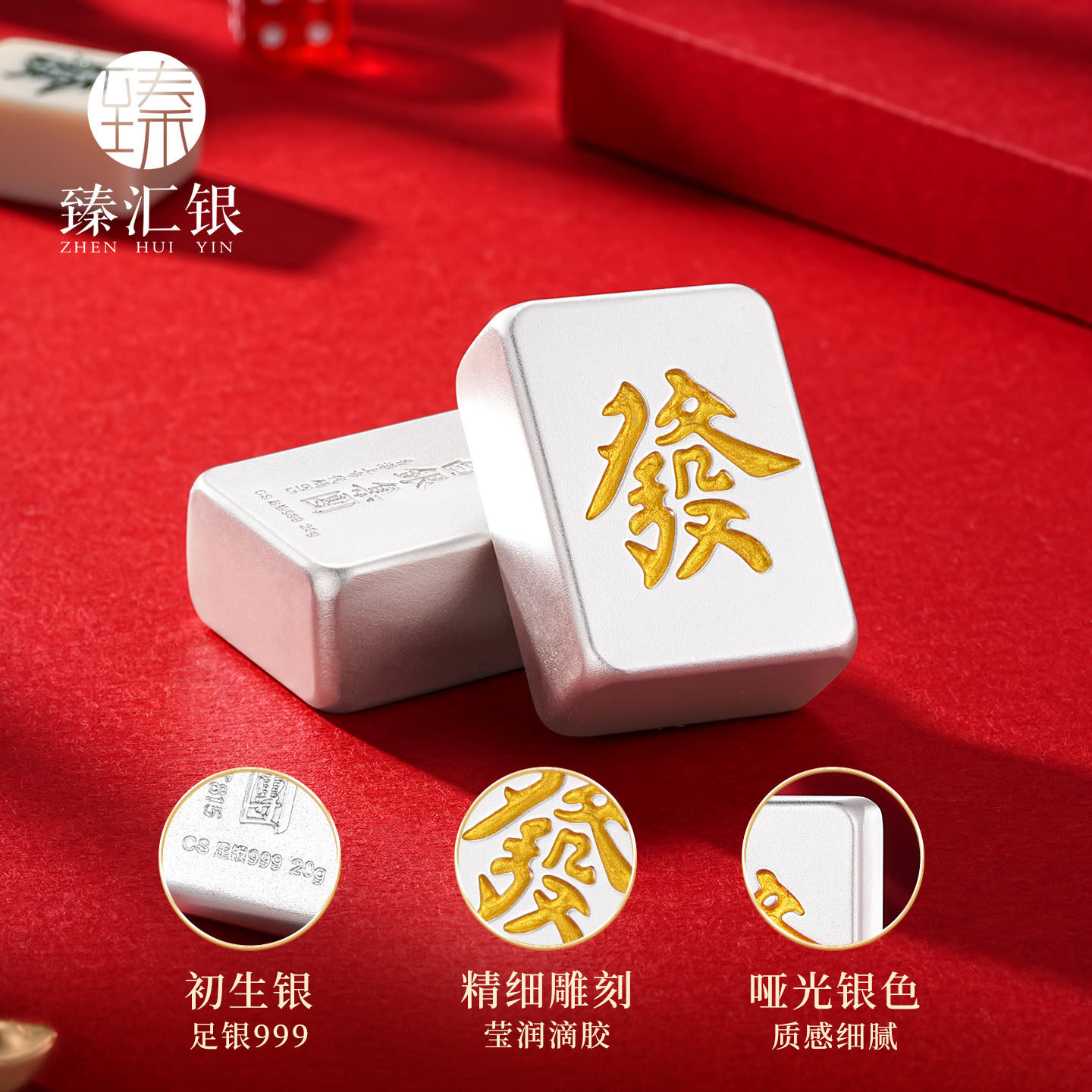 📚 臻汇银纯银发财红中麻将摆件足银999一锭发高中银砖发财纪念礼物