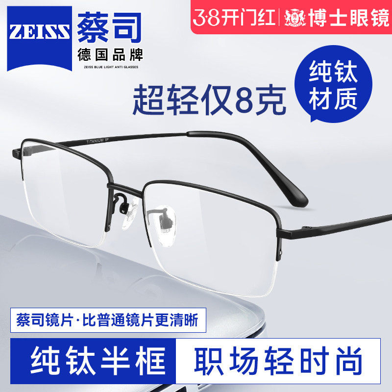 📚 德国蔡司纯钛半框近视眼镜男款可配度数超轻防蓝光眼睛镜框镜架女
