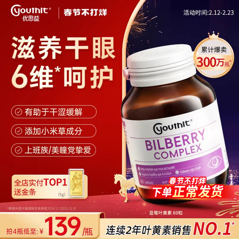 📚 Youthit优思益蓝莓叶黄素护眼丸成人越橘胶囊花青素学生保健品