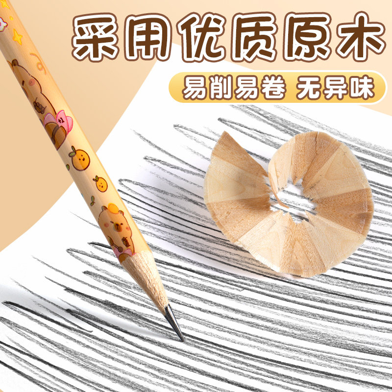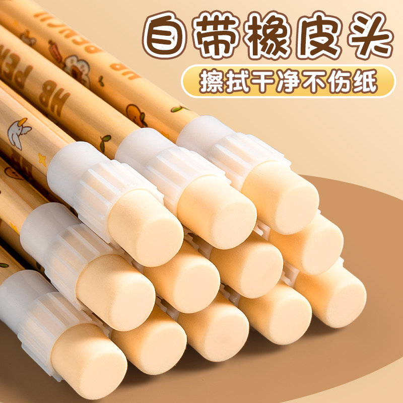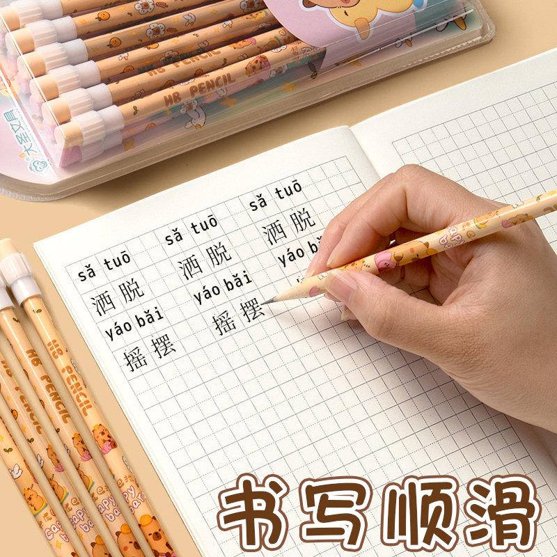 📚 卡皮巴拉圆杆铅笔带橡皮擦头小学生一年级专用大皮头铅笔2026新款hb铅笔幼儿园儿童写字铅笔高品质不易断铅笔