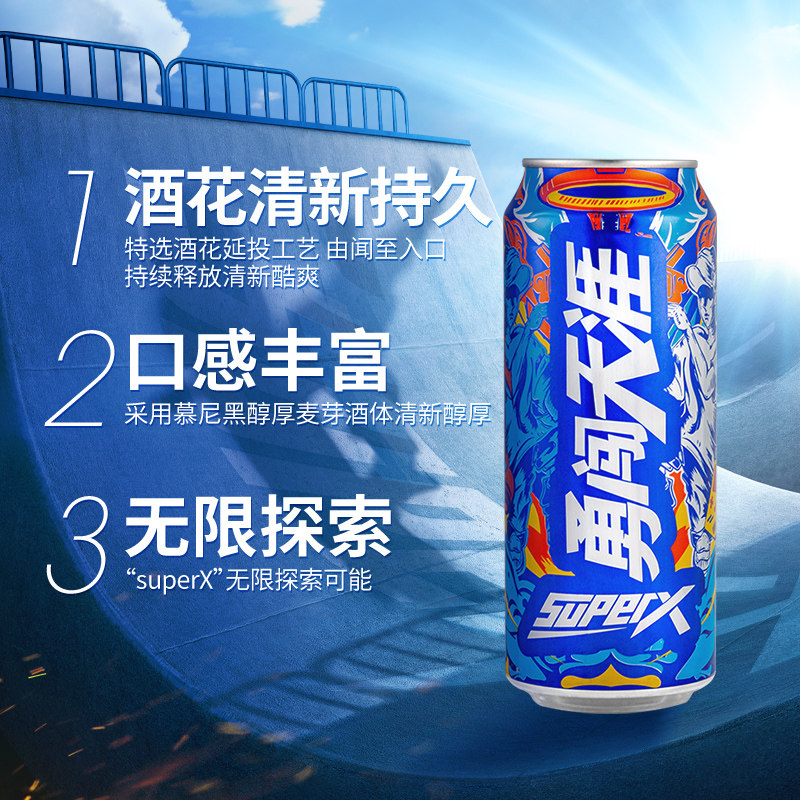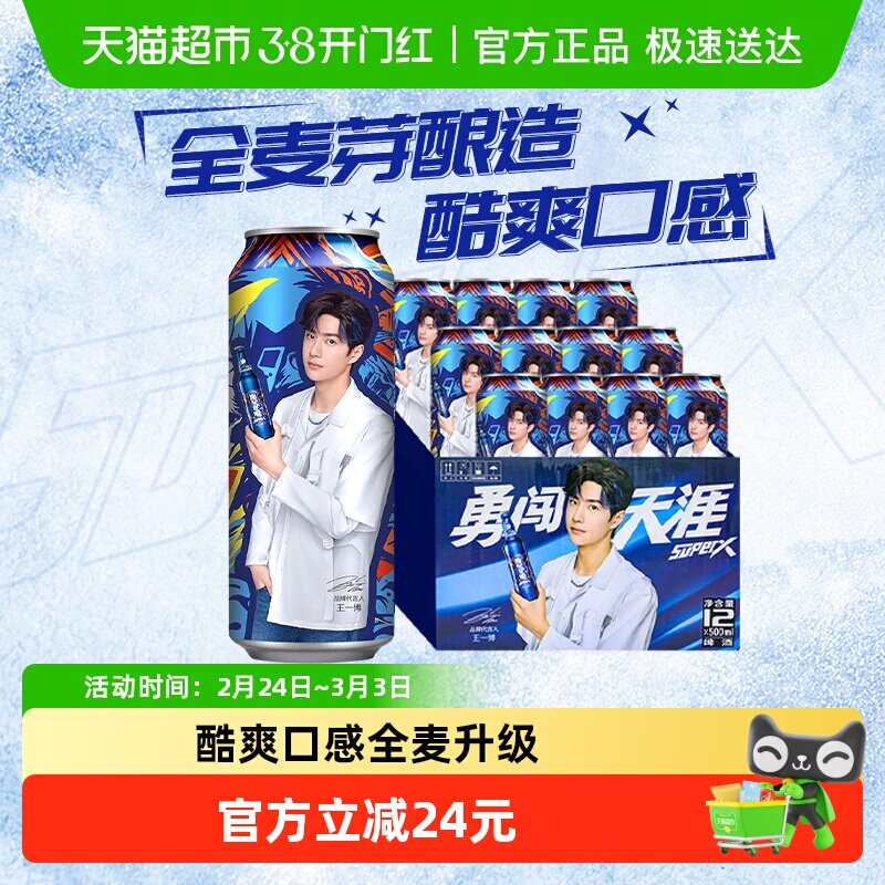 📚 雪花啤酒勇闯天涯superX500ml*12听拉格啤酒整箱【超级勇闯】