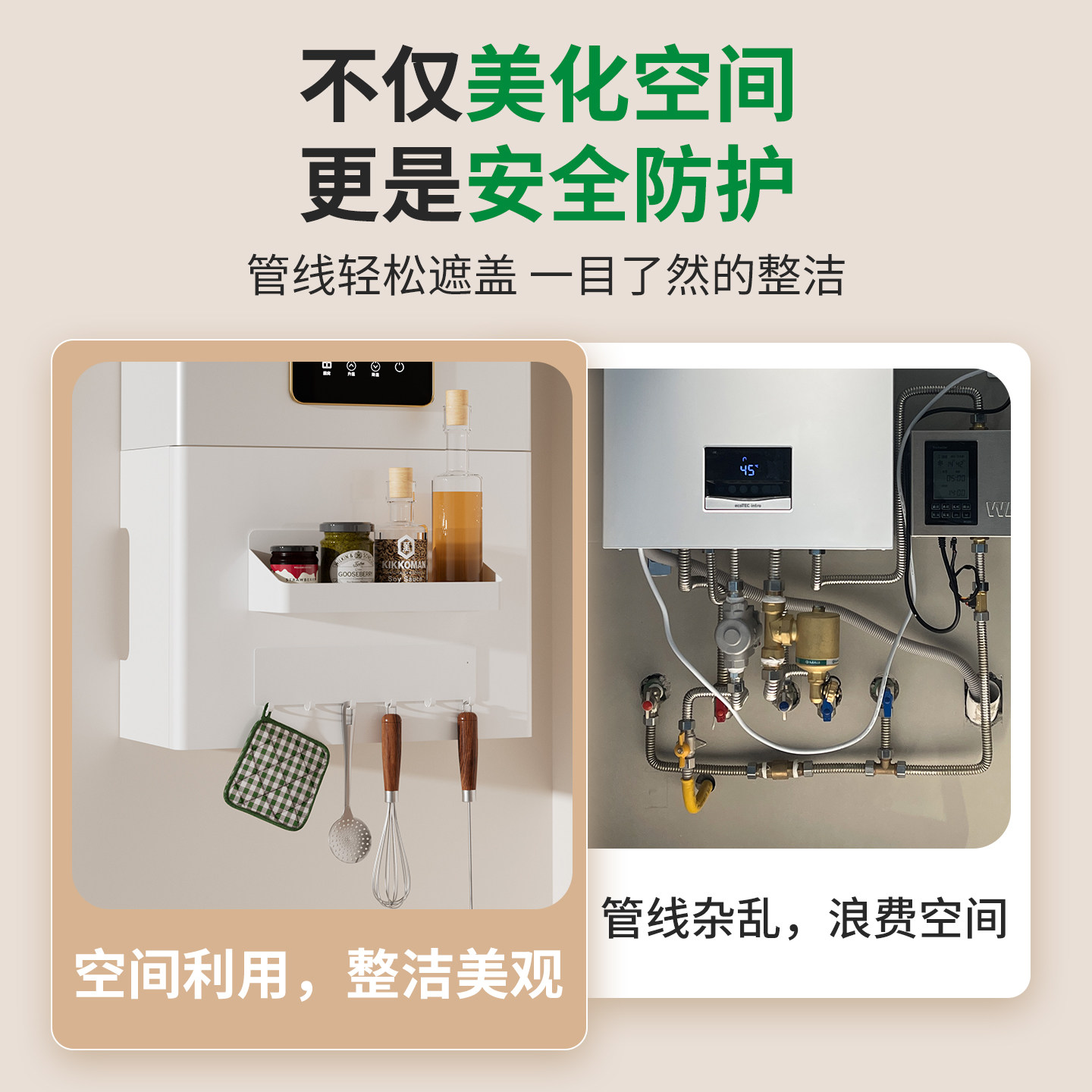 📚 无孔款燃气热水器管道遮挡罩装饰厨房壁挂下方遮丑锅炉灶置物架