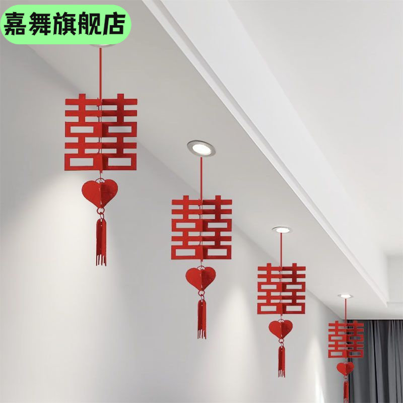 📚 结婚立体喜字挂饰挂件灯笼新房客厅天花板吊顶装饰婚房布置男女方