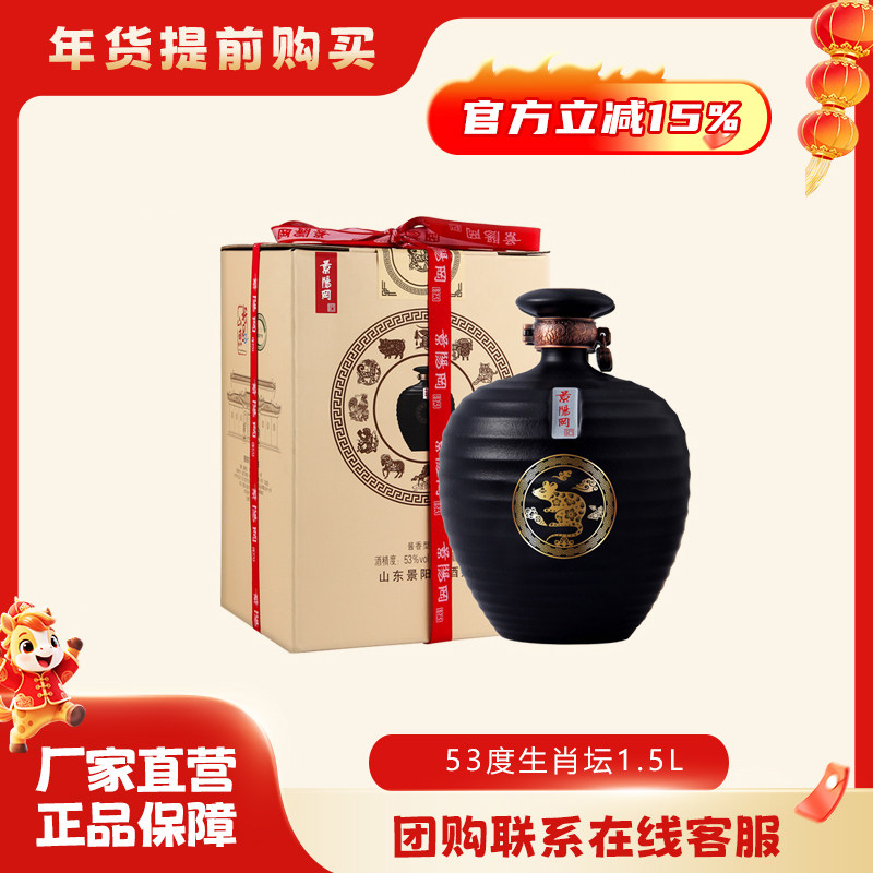 📚 景阳冈53度赖茆酱香型白酒生肖纪念白酒1.5L礼盒装送礼收藏酒