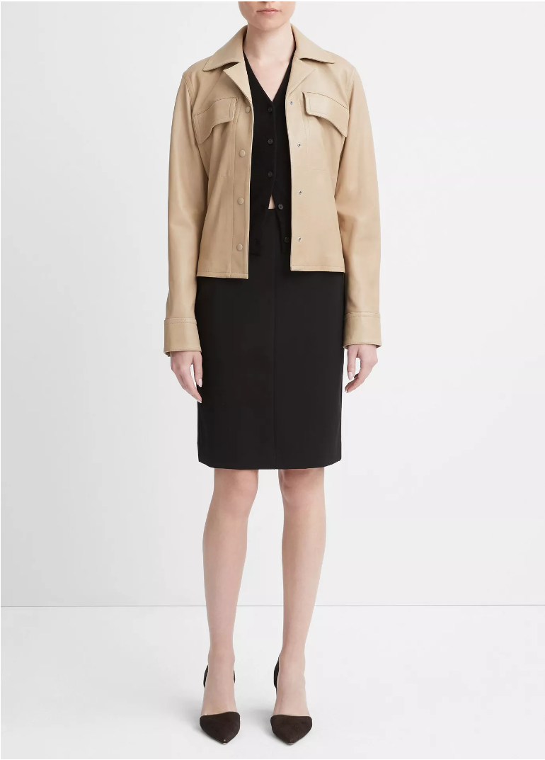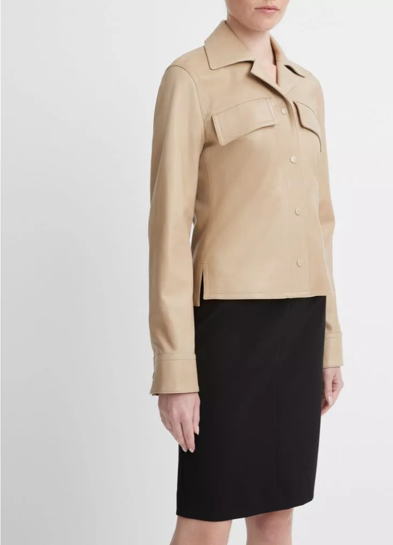 📚 VINCE代购2023秋季新款简约真皮小羊皮修身短款女士夹克外套皮衣