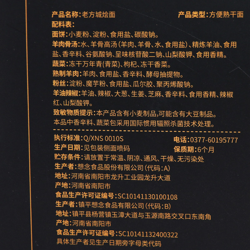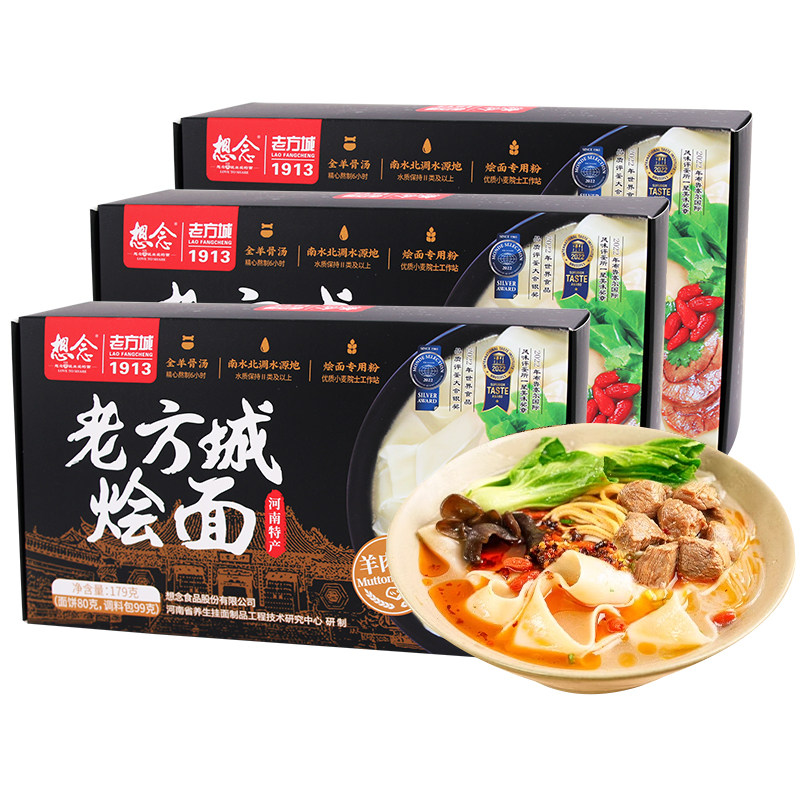 📚 想念老方城烩面179g*3盒河南特产牛肉羊肉烩面手工非油炸速食面条