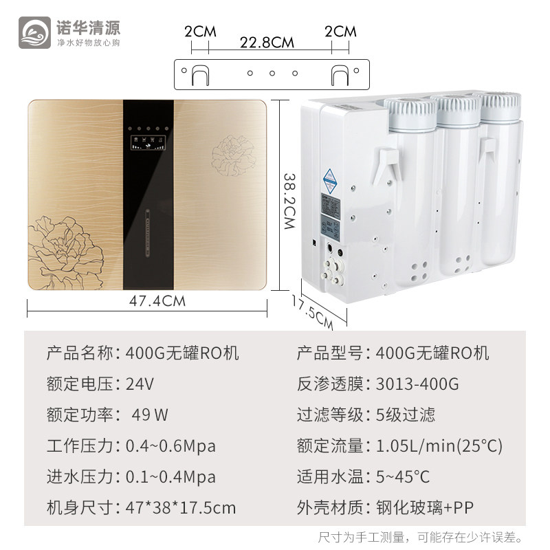 📚 400G纯水机家用净水器直饮机RO反渗透无桶纯水机75G微废水质保2年