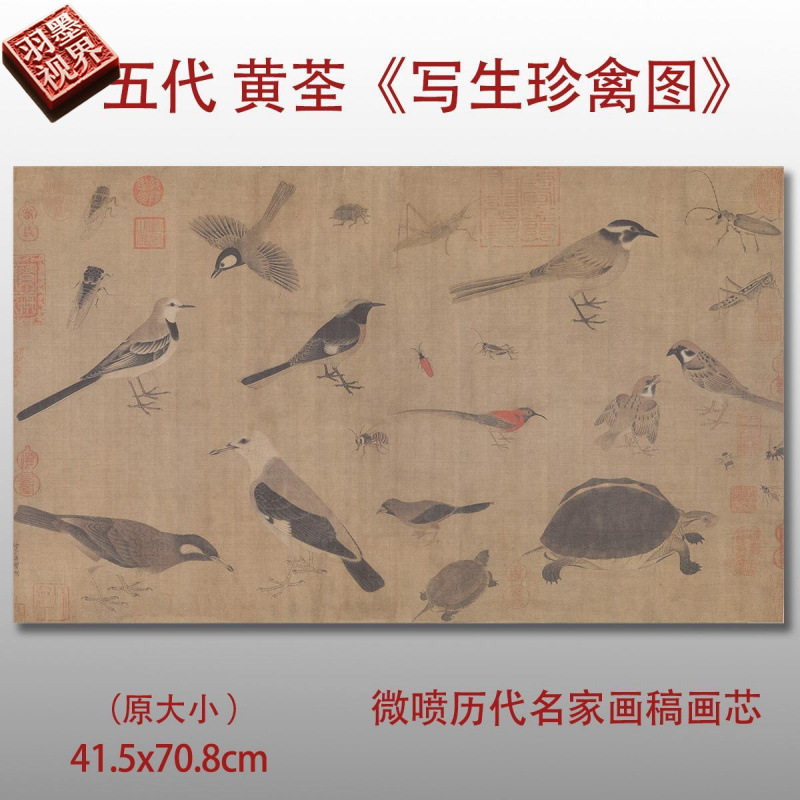 这款艺术品真的是让人一见倾心!首先,它的材质超级精致,手感超级舒适,一看就是艺术品级别的。而且,它的内容更是让人惊艳,五代黄筌的写生珍禽图,真的是一幅难得的艺术珍品。