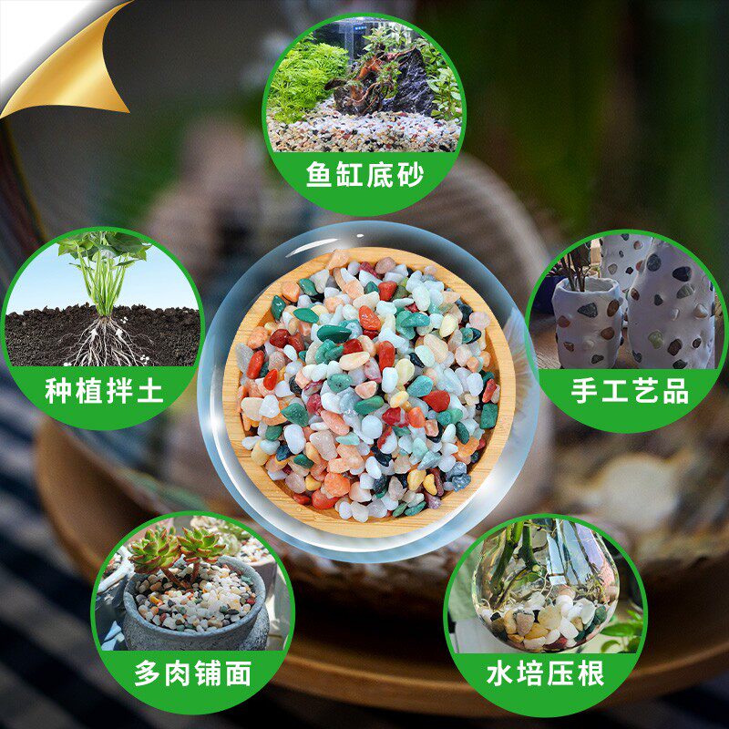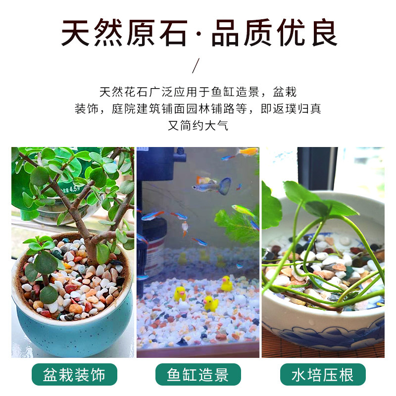 📚 天然雨花石鹅卵石专用石子花盆多肉盆栽铺面石鱼缸造景底砂五彩石