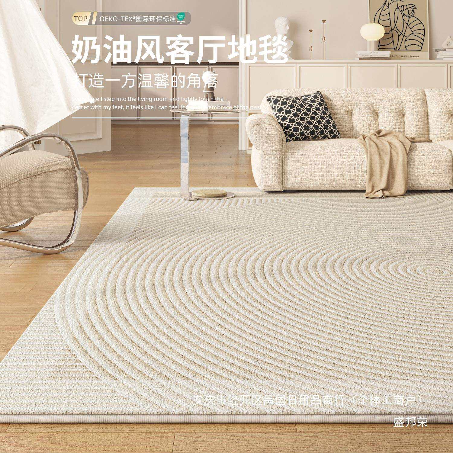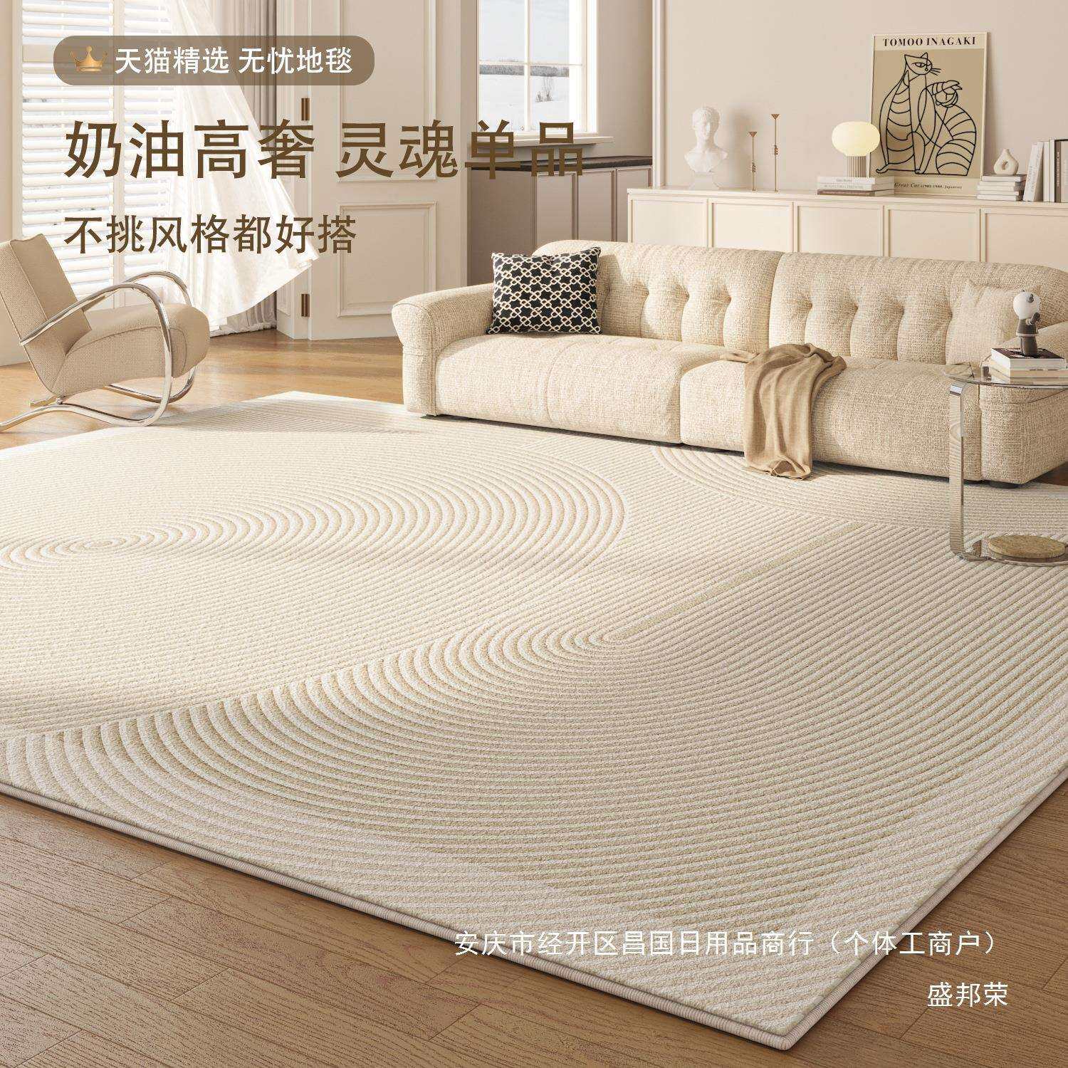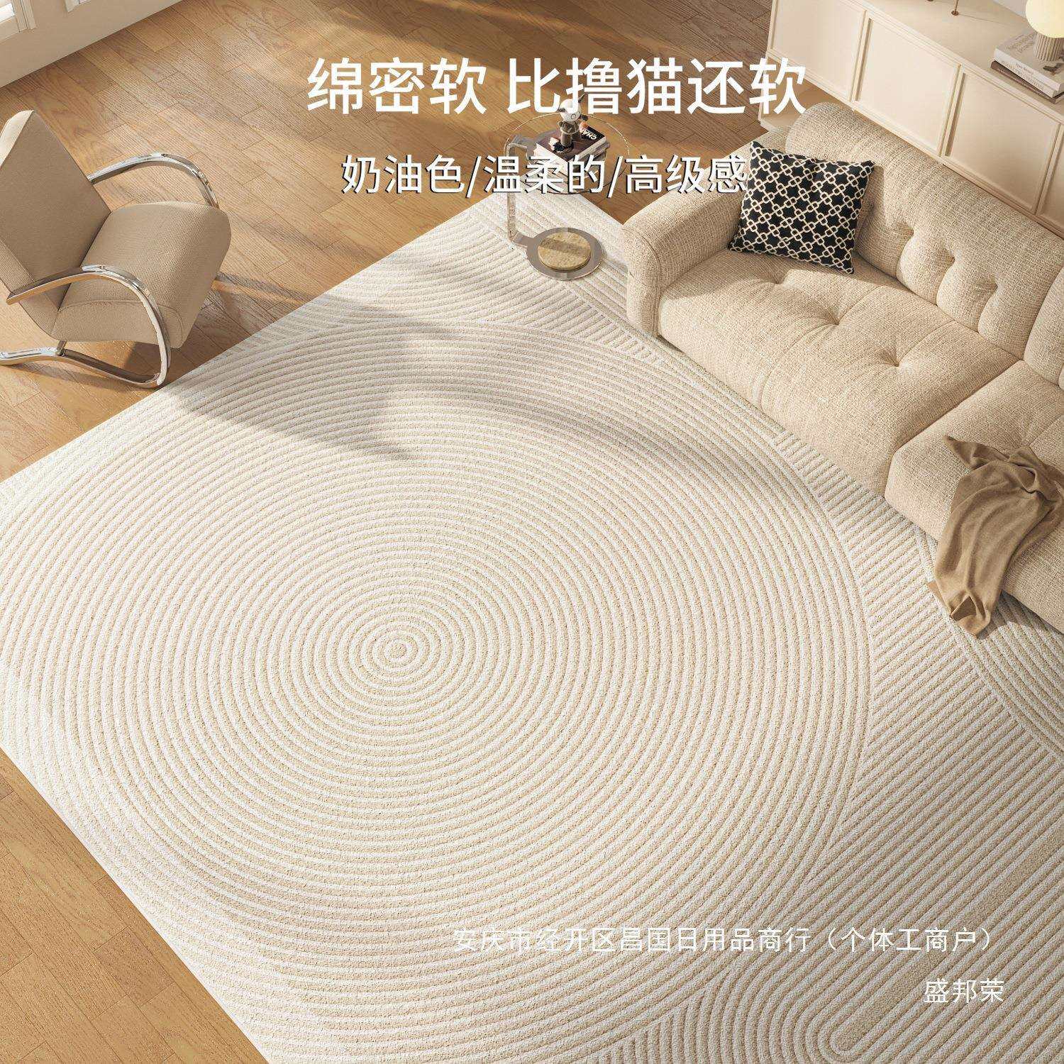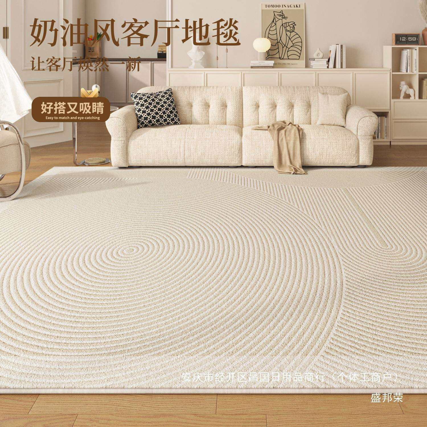 📚 奶油风简约现代易法式轻奢床边地毯防水打理卧室沙发茶几地垫