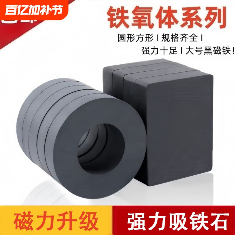 📚 强力磁铁铁氧体大号强磁铁吸铁石方形环形磁铁带孔圆环黑磁石磁力
