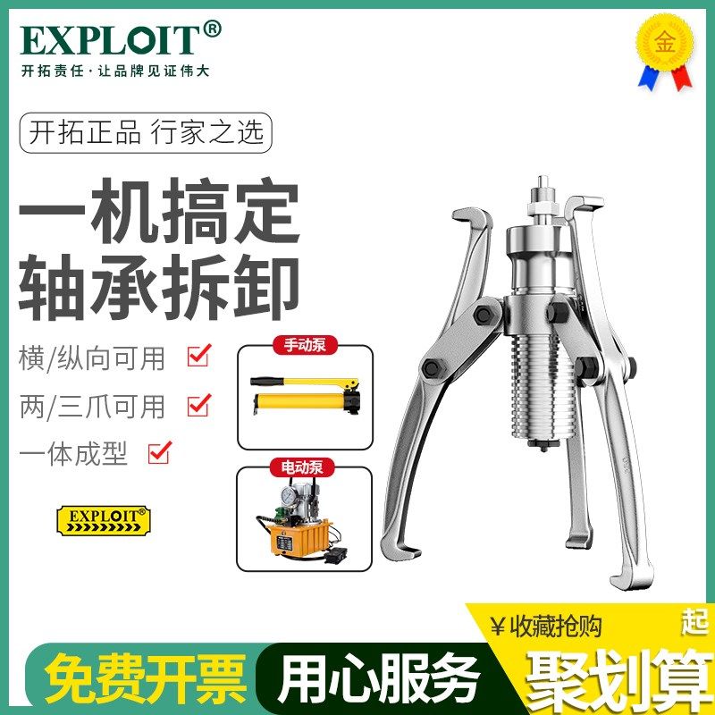 📚 开拓拉马轴承拆卸工具液压三爪拉拔器万用拔轮器手动油泵配件大全