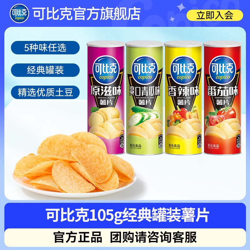 📚 可比克薯片105g经典罐装多口味膨化解馋小零食休闲网红大礼包