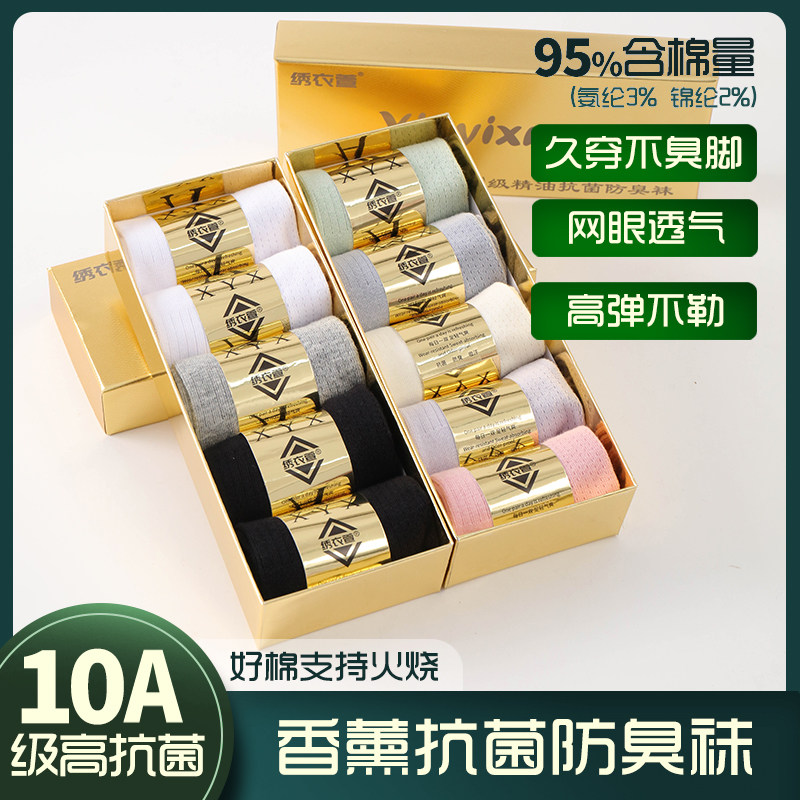 📚 【两盒到手10双】纯棉袜男女10A级春夏抗菌情侣防臭袜男运动短袜