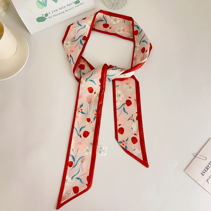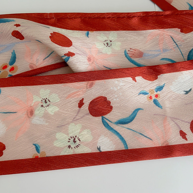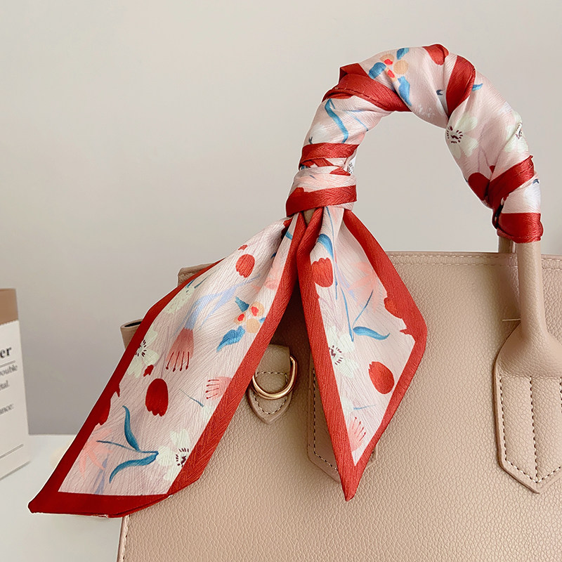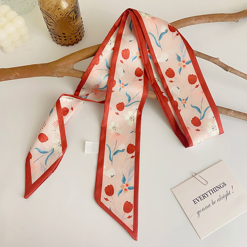 📚 新款柑橘红色复古小长条丝巾礼物女扎发绑包高级感丝带领巾飘带