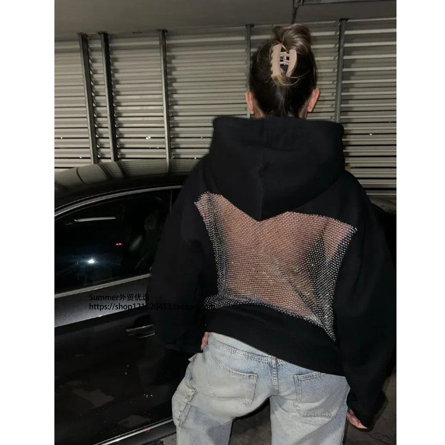 📚 2025秋露背镂空网纱连帽衫卫衣 Mesh backless hooded sweatshirt