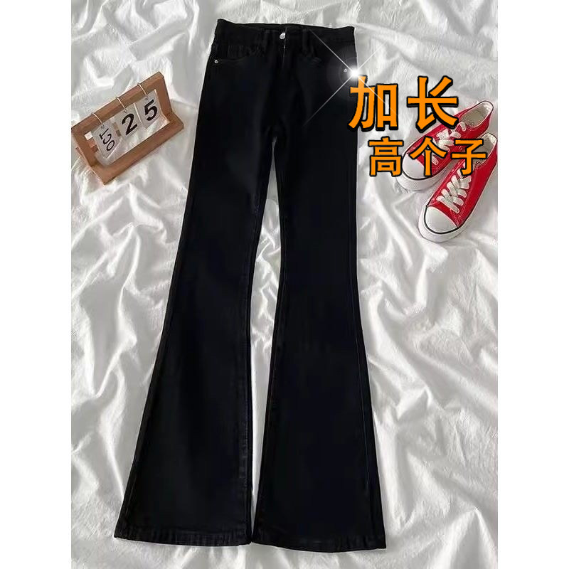 📚 加长款黑色柳叶弯刀微喇牛仔裤男高个子vibe显高显瘦窄版微喇裤子