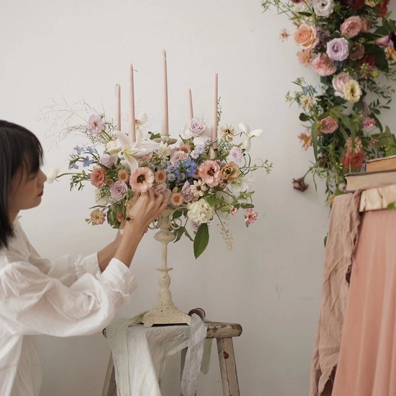📚 润家家居浪漫欧式五头烛台餐厅婚礼铁艺ins风白色古典餐桌蜡烛台