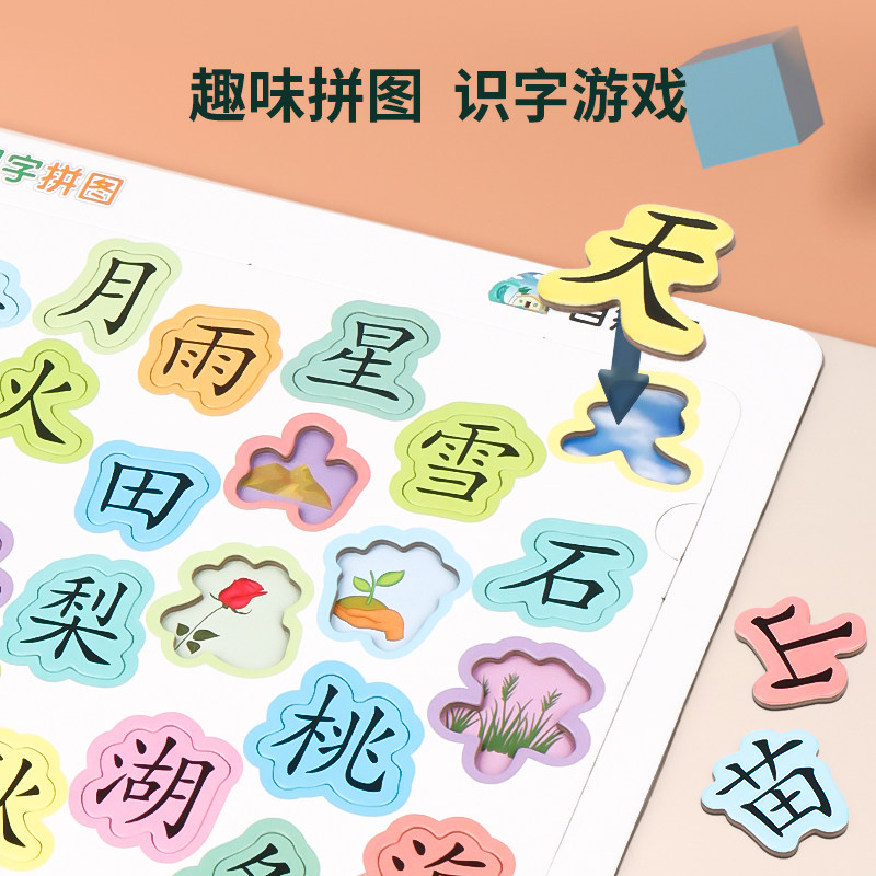 📚 识字卡片认字拼图汉字卡宝宝早教平图幼儿3到6岁儿童益智启蒙玩具