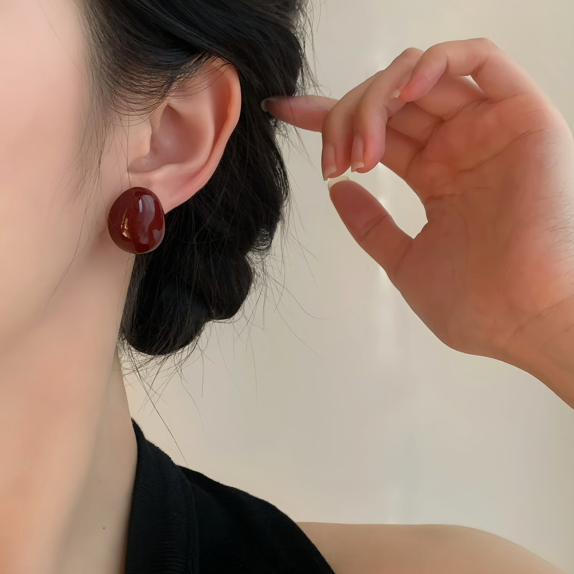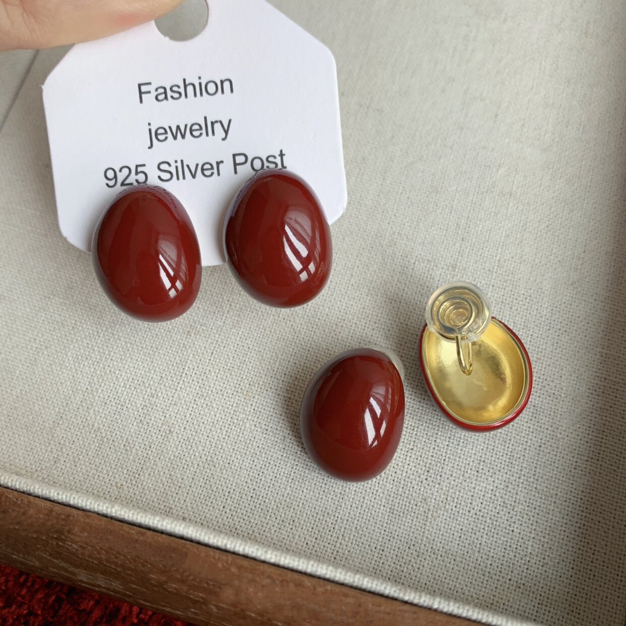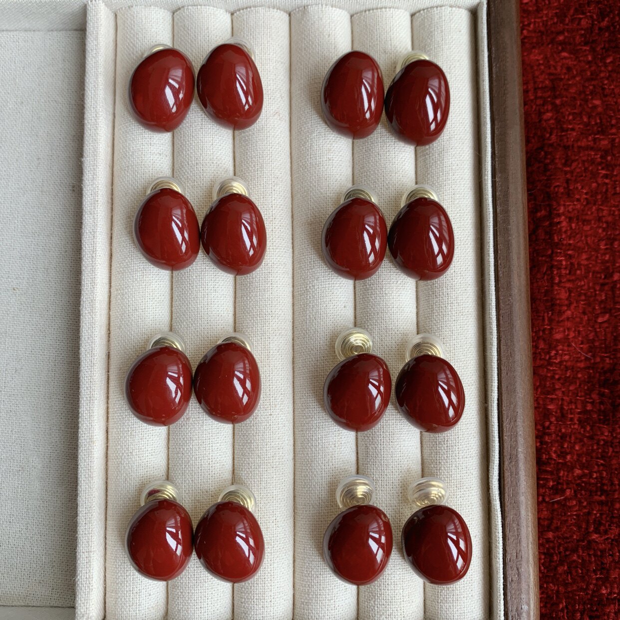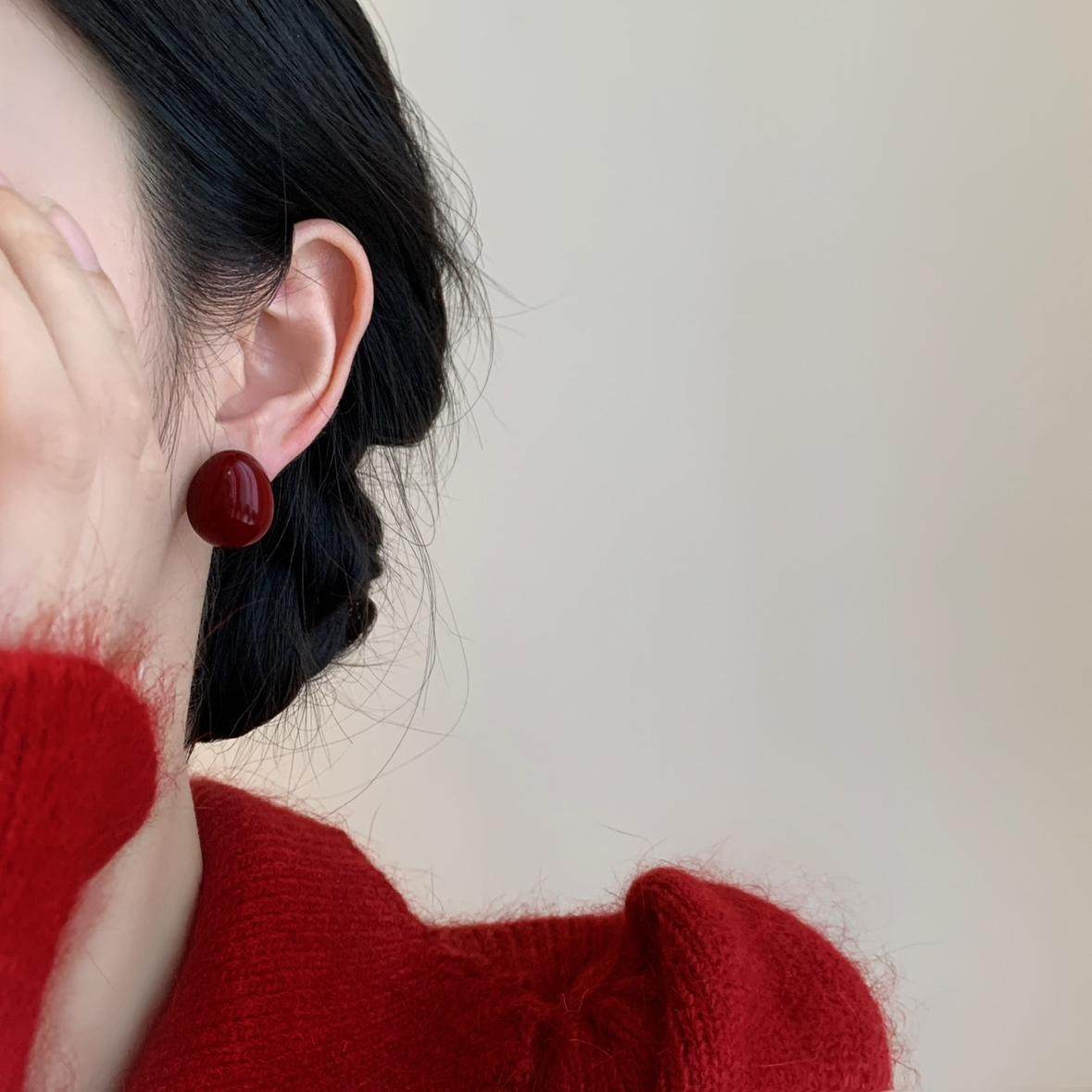 📚 「微醺红豆」复古红色耳饰蚊香盘耳夹女无耳洞酒红过年款耳环耳钉