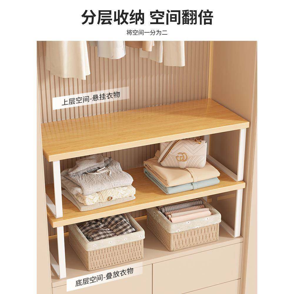 📚 衣柜分层隔板收纳架柜子置物架橱柜内隔断微波炉利用神器厨柜小型