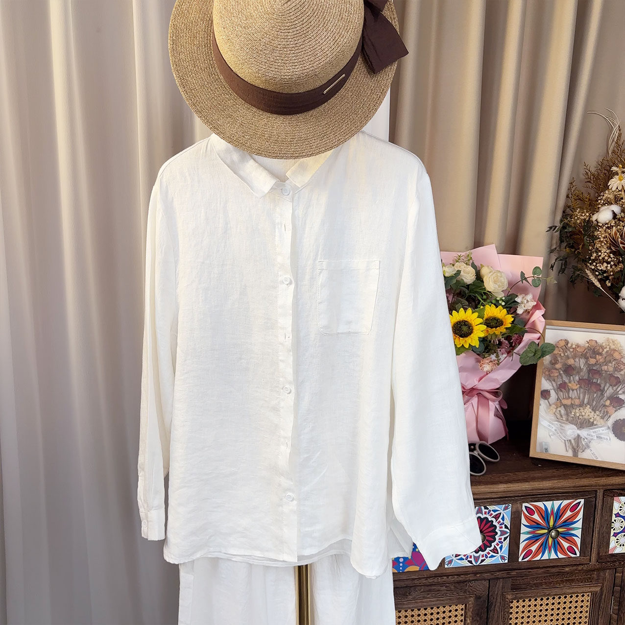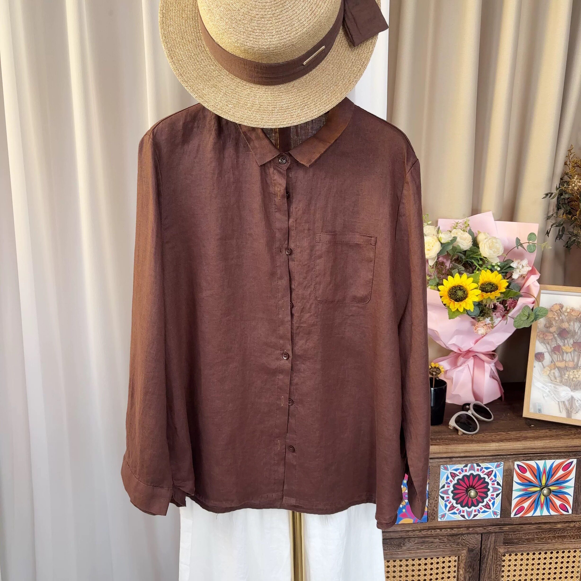 📚 【100%纯亚麻衬衫】黄金纱雨露亚麻新款长袖翻领纯麻料小衫春秋