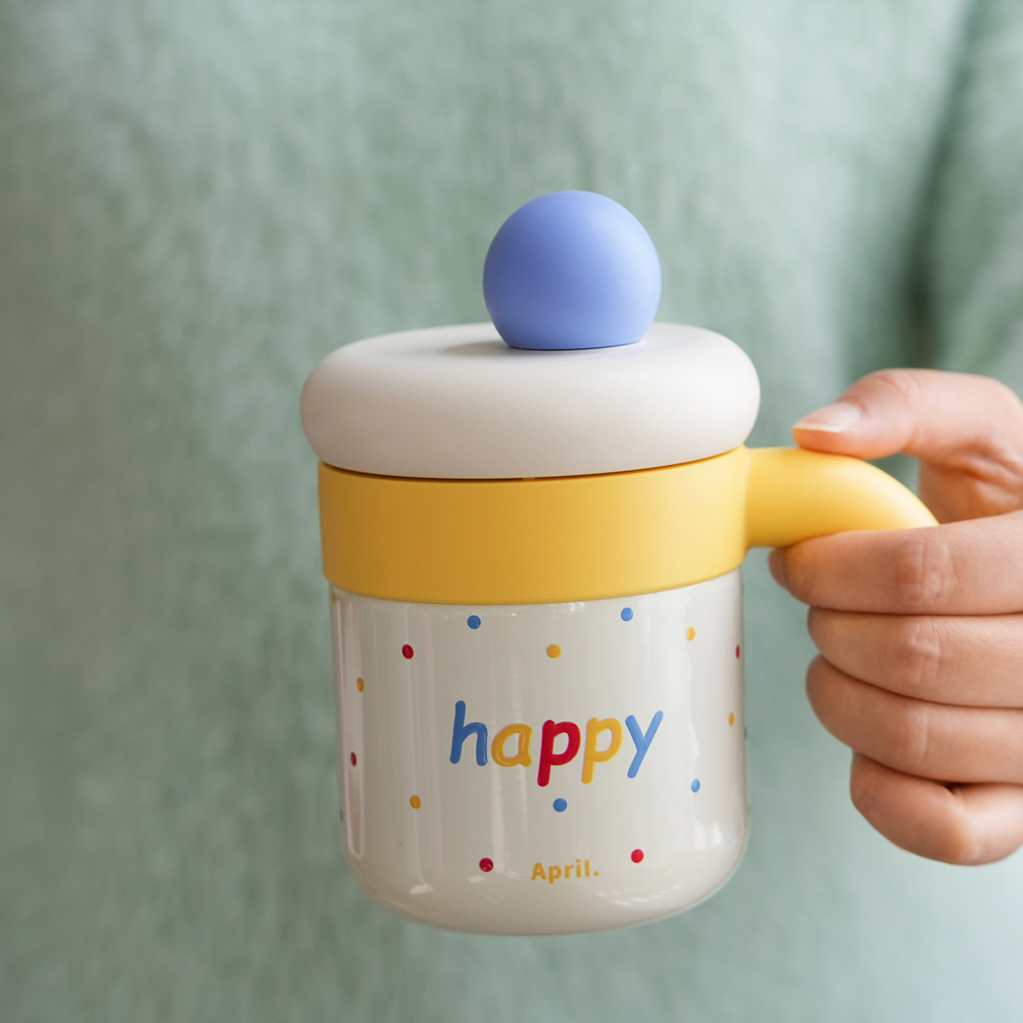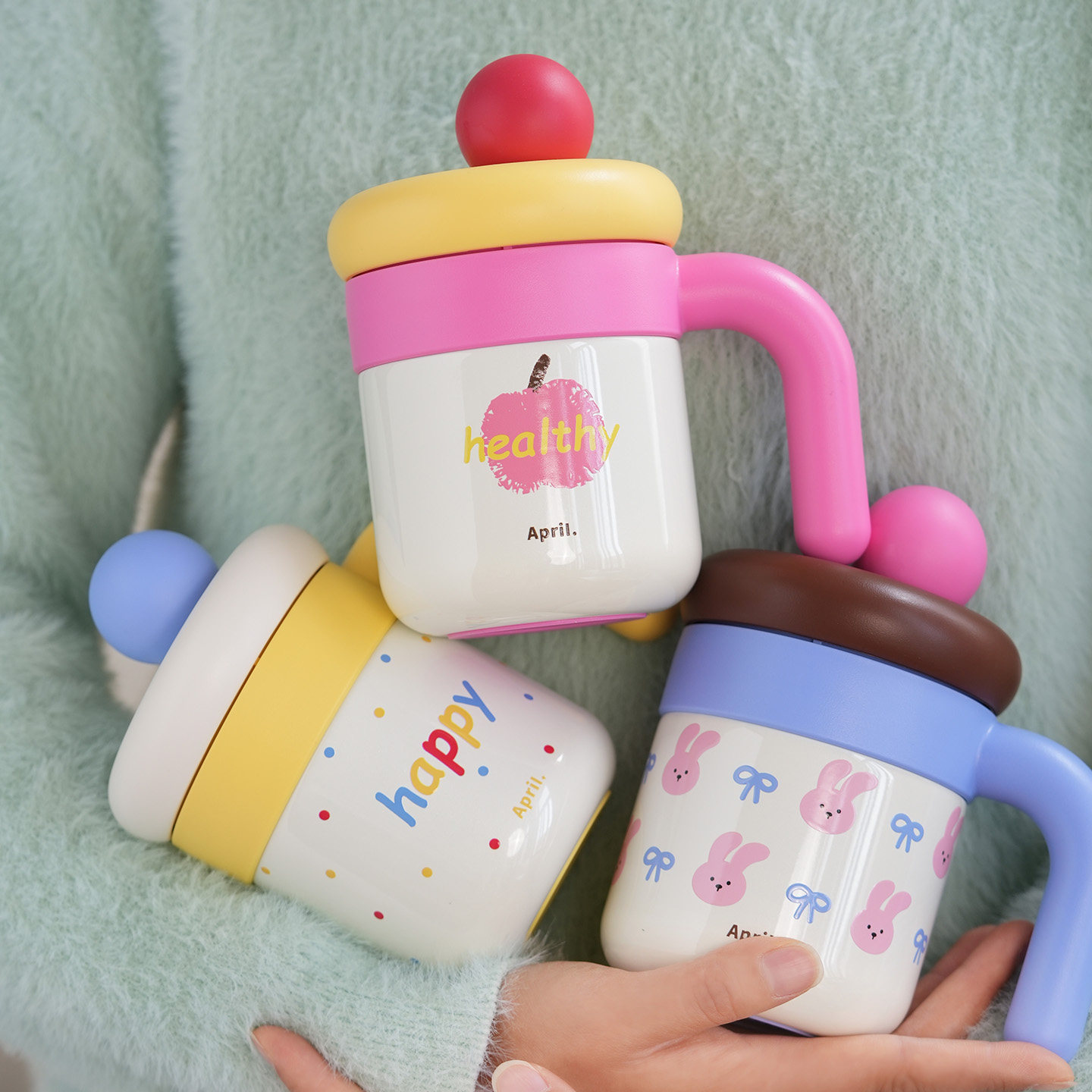 📚 April桌面保温杯马克杯吸管带盖带手柄水杯外出便携杯子316不锈钢
