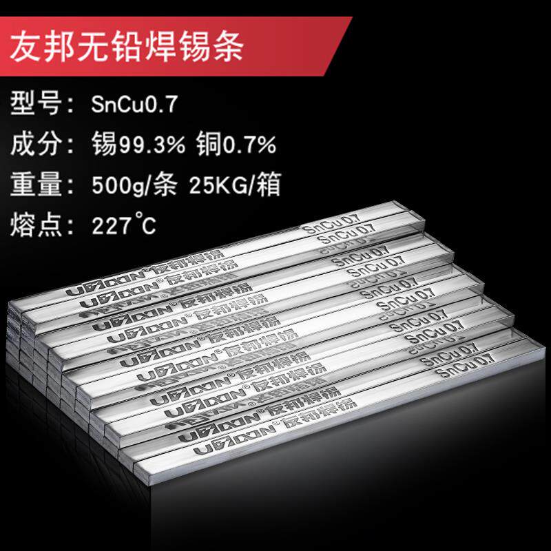 📚 友邦无铅焊锡条环保99.9纯锡高亮欧盟标准无铅焊锡99.3Cu0.7 500G