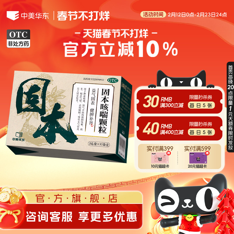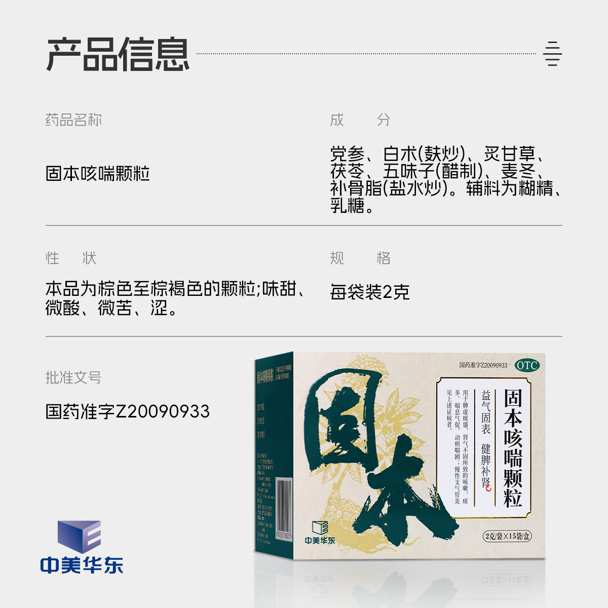 📚 中美华东固本咳喘颗粒2g*15袋/盒健脾补肾咳嗽痰多慢性支气管炎