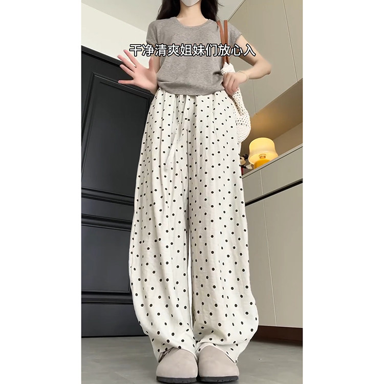 📚 日系慵懒亚麻冰丝速干休闲裤女夏季2025新款时尚松紧腰波点阔腿裤