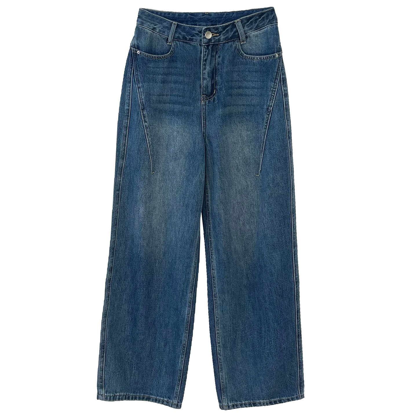 📚 高腰显瘦工装弯刀牛仔裤女秋冬2025新款宽松直筒阔腿裤香蕉镰刀裤