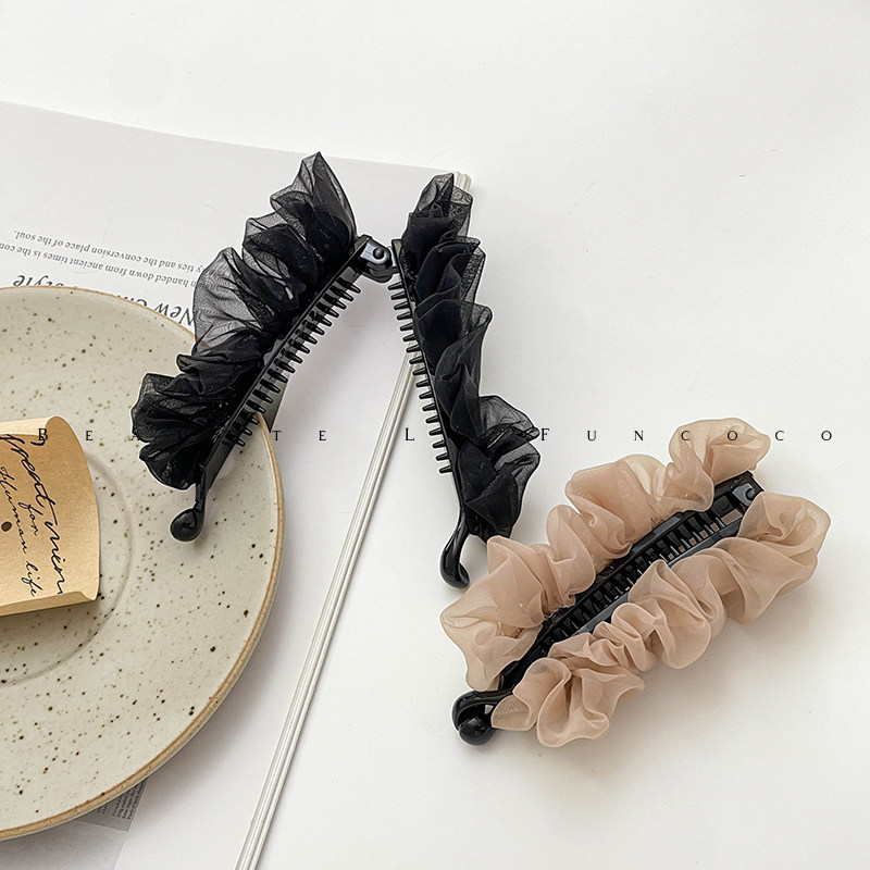 📚 FUNCOCO|卷卷欧根纱竖式发夹固定后脑勺扎高马尾香蕉夹神器韩女