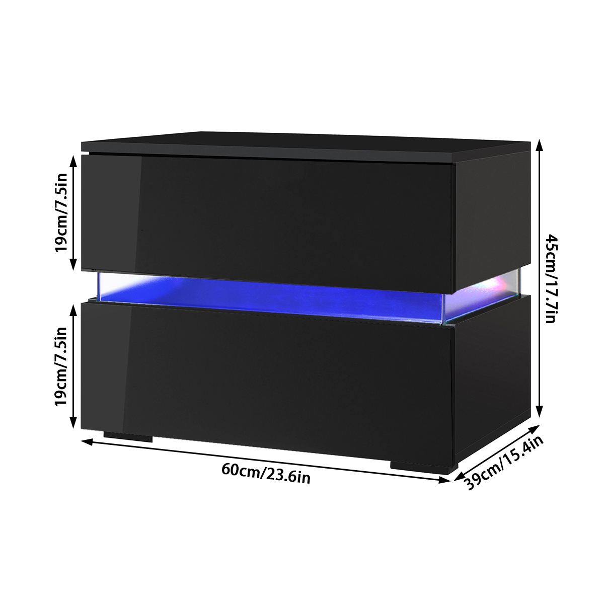 📚 Modern Luxury LED Light Nightstand w/2 Drawers Organizer Sto