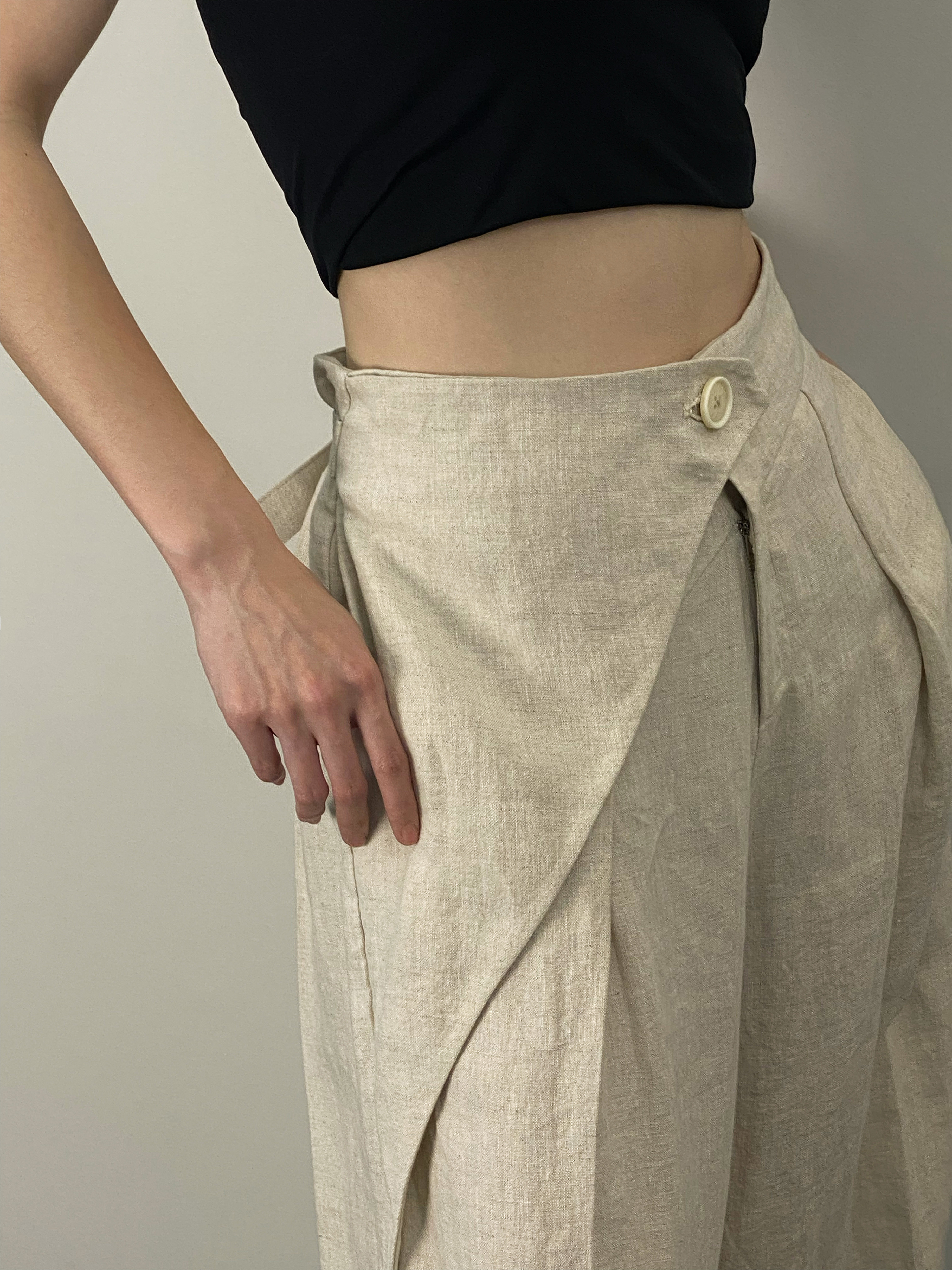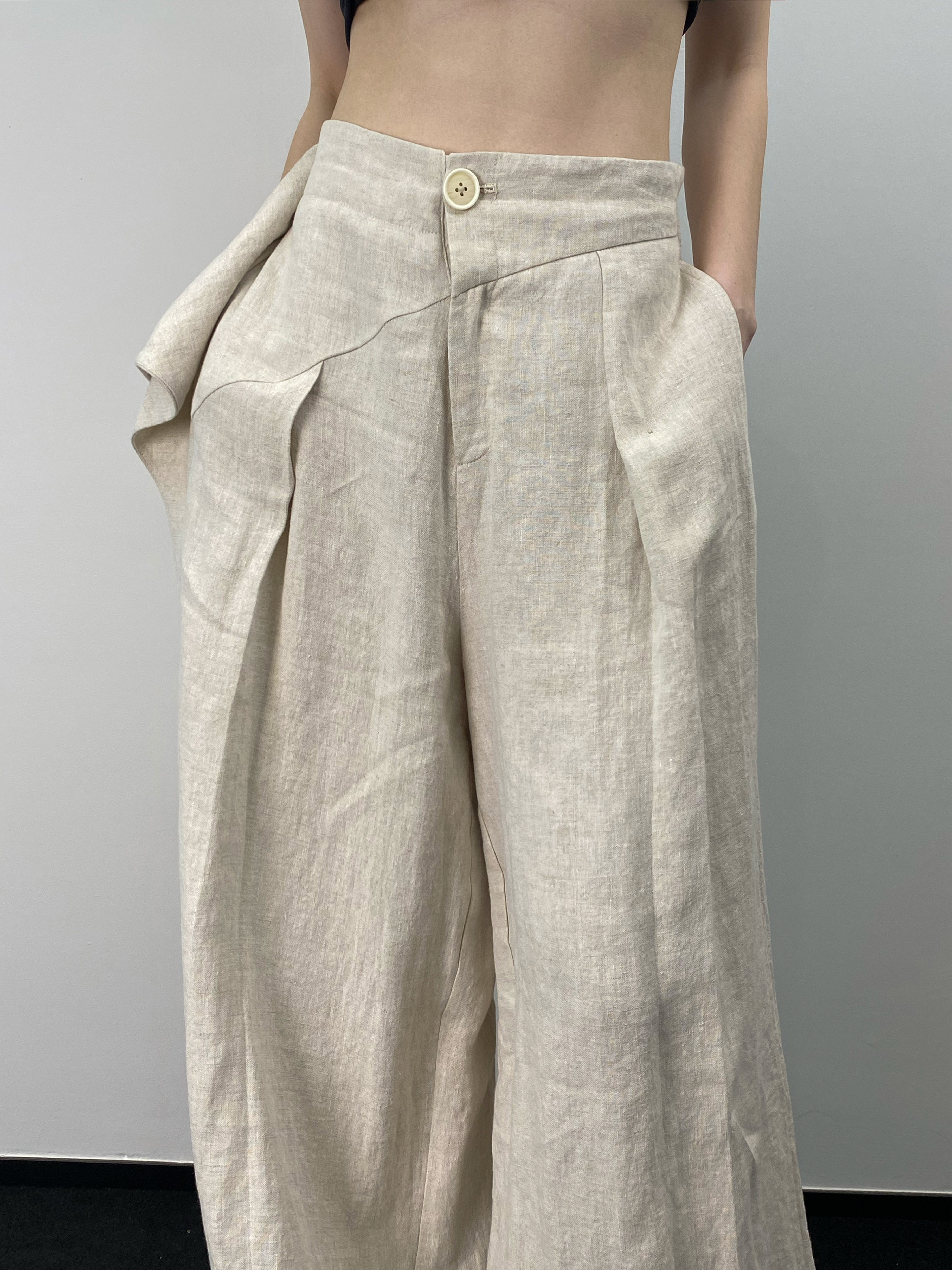 📚 「 凌鸦ILNya 」月海_月白 大褶阔腿裤 亚麻肌理极简宽松飘布长裤