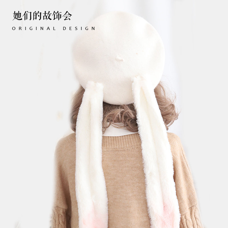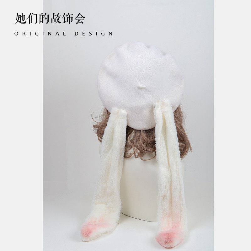 📚 日系贝雷帽新款垂耳兔软妹软萌可爱少女画家帽秋冬帽子女春季