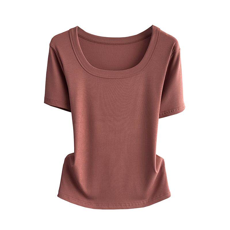 📚 方领短袖T恤女夏季内搭2025新款正肩宽松遮肉打底衫上衣螺纹体恤