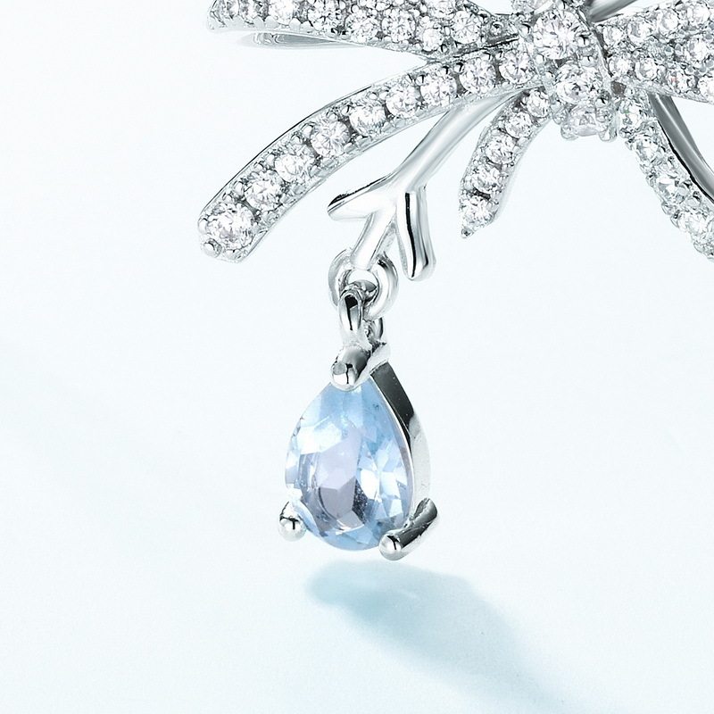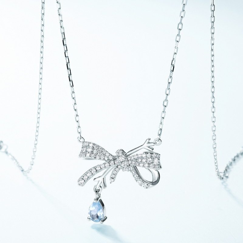 📚 新款雪花款天空蓝托帕石项链S925银镀18K金蝴蝶结满钻锁骨链轻奢