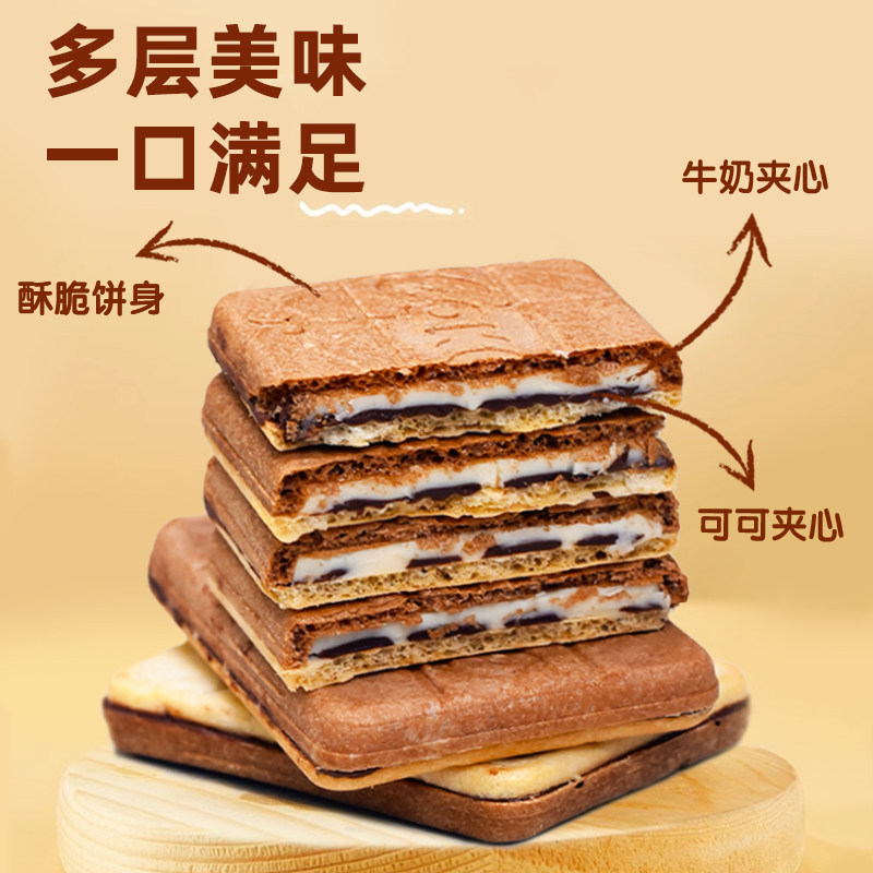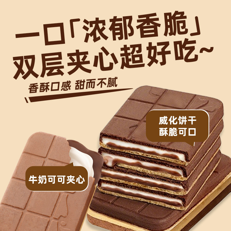 📚 牛奶可可威化饼干纯可可脂巧克力制品薄脆夹心饼干酥脆休闲小零食