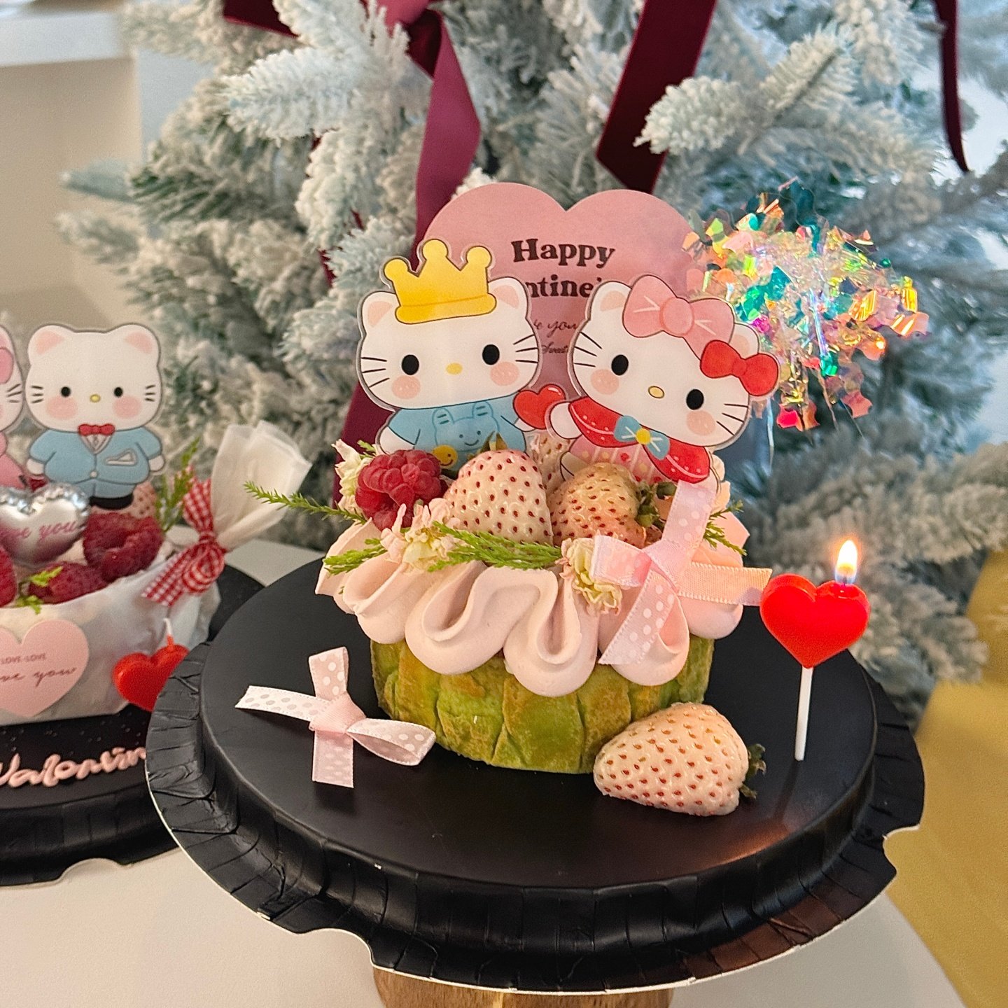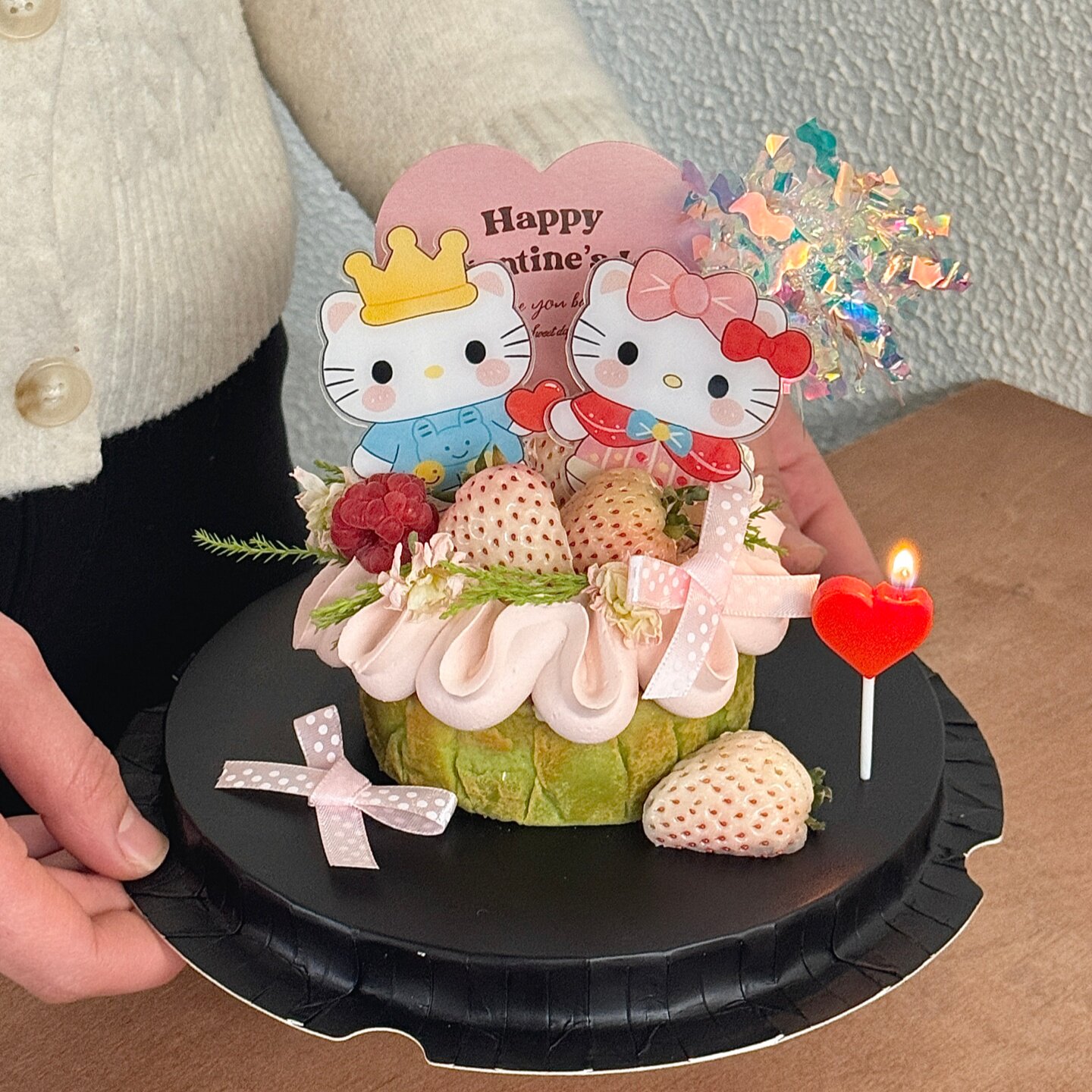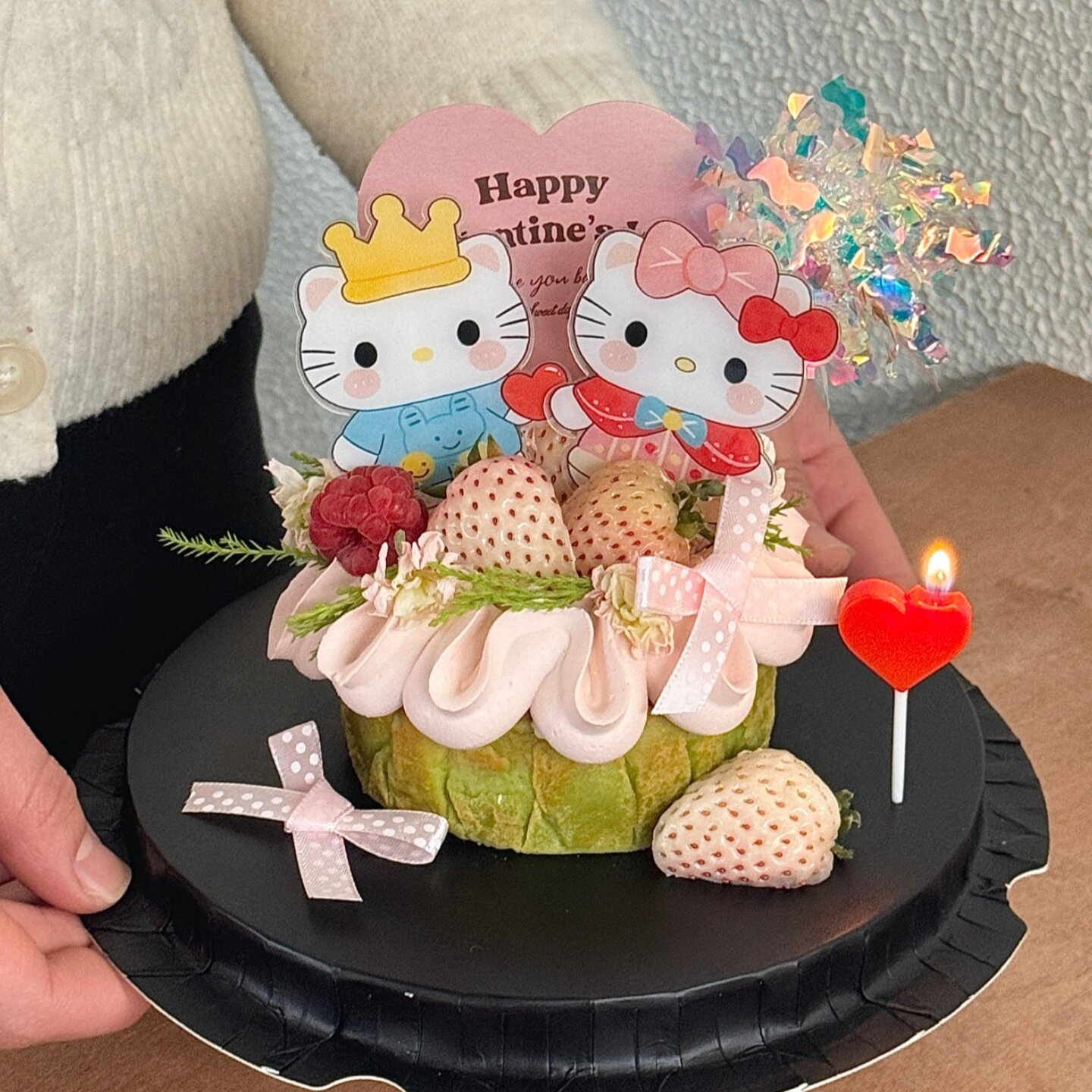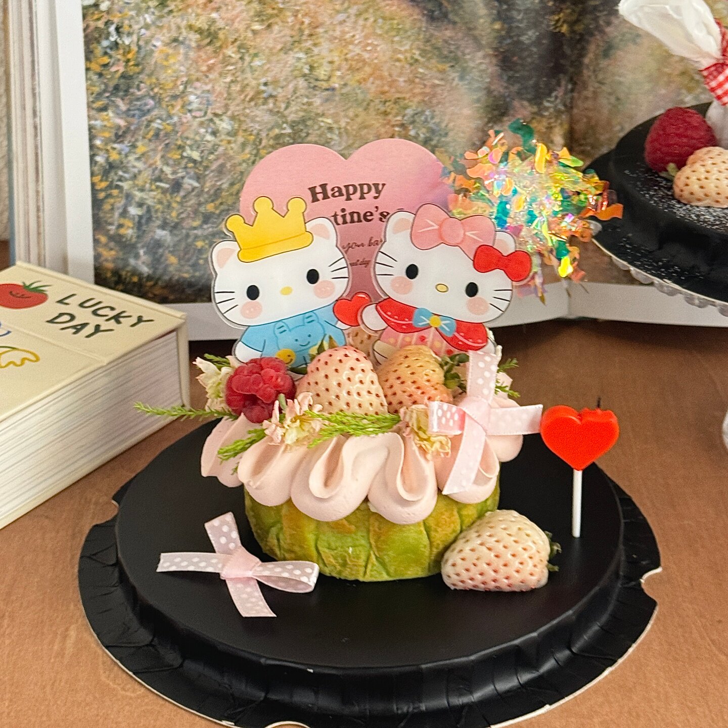 📚 网红2.14情人节情侣kt猫亚克力蛋糕装饰摆件爱心卡片蜡烛烘焙插件
