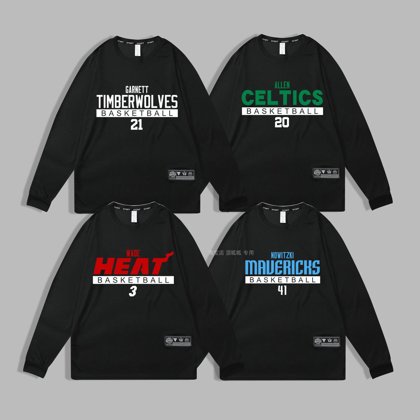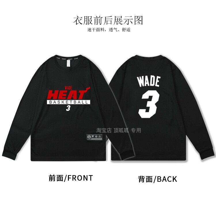 📚 速干美式运动T恤加内特长袖韦德训练服雷阿伦篮球衣诺维斯基秋