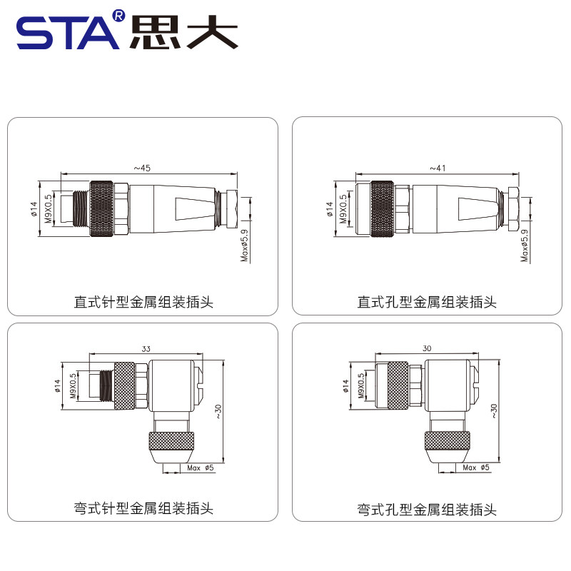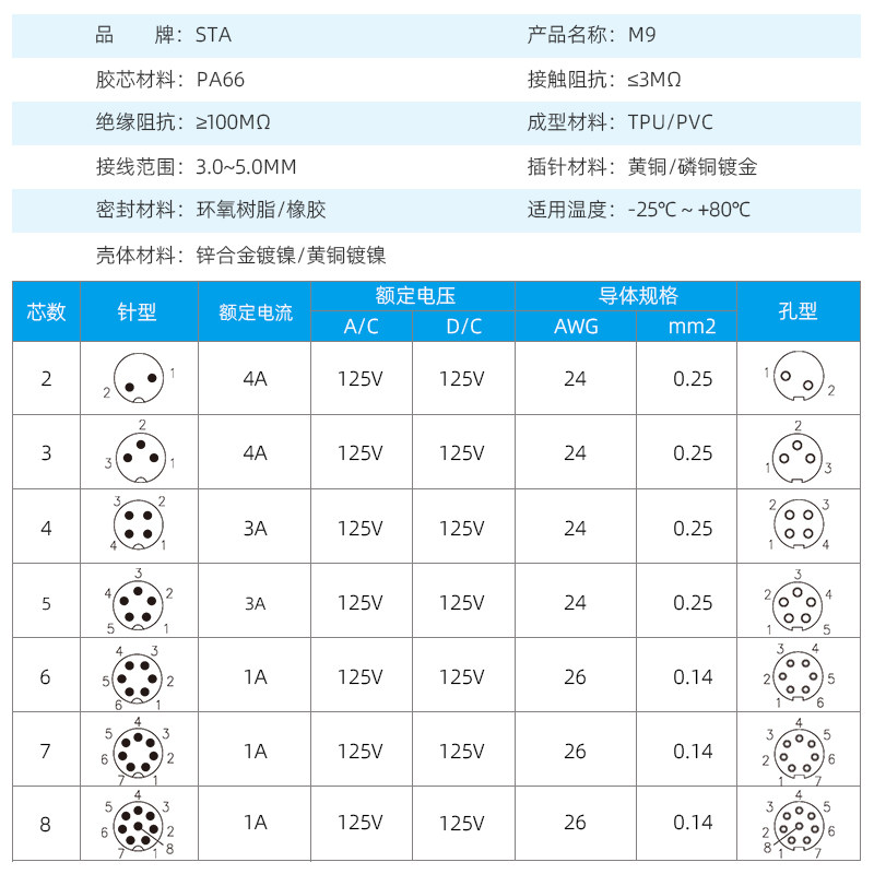📚 M9全金属防水连接器23针45孔678芯组装式直弯公母头IP67航空插头