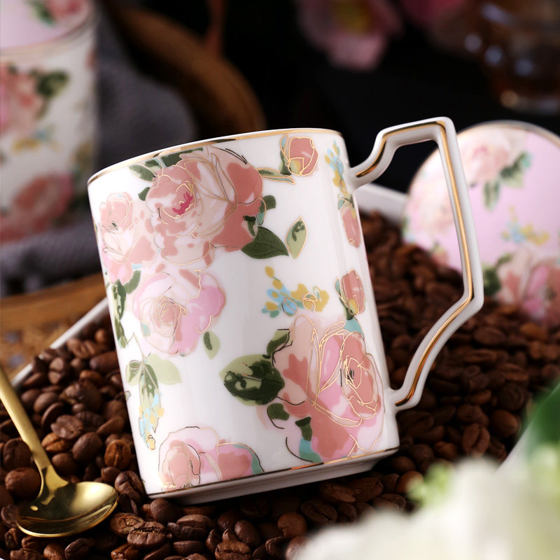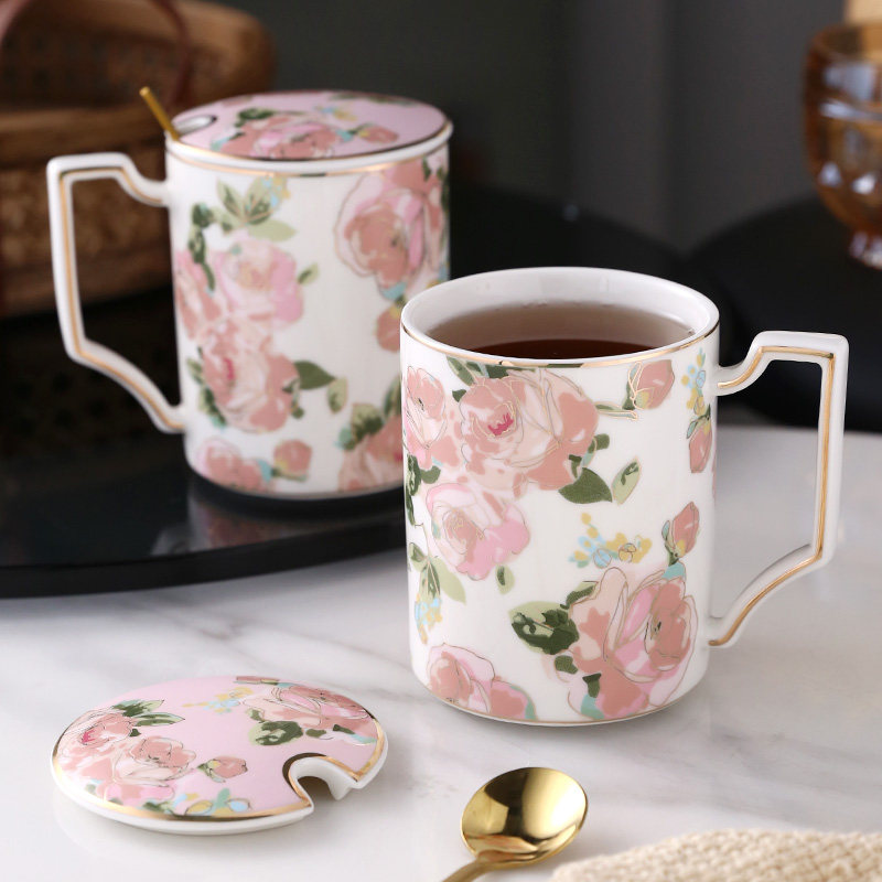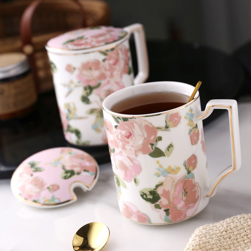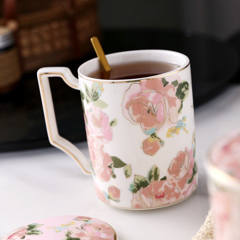 📚 陶瓷杯马克杯精致好看办公室水杯带盖勺家用早餐杯子送女生伴手礼