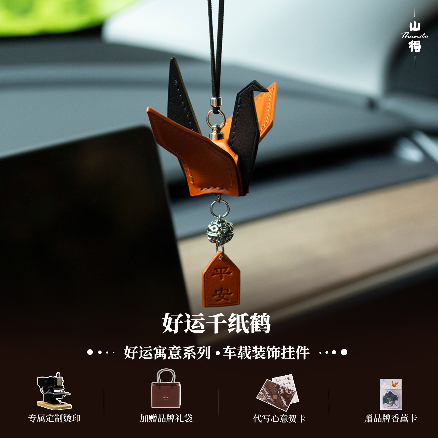 📚 【好运常在】真皮千纸鹤车挂汽车挂件车内吊饰高级感车饰祝福平安