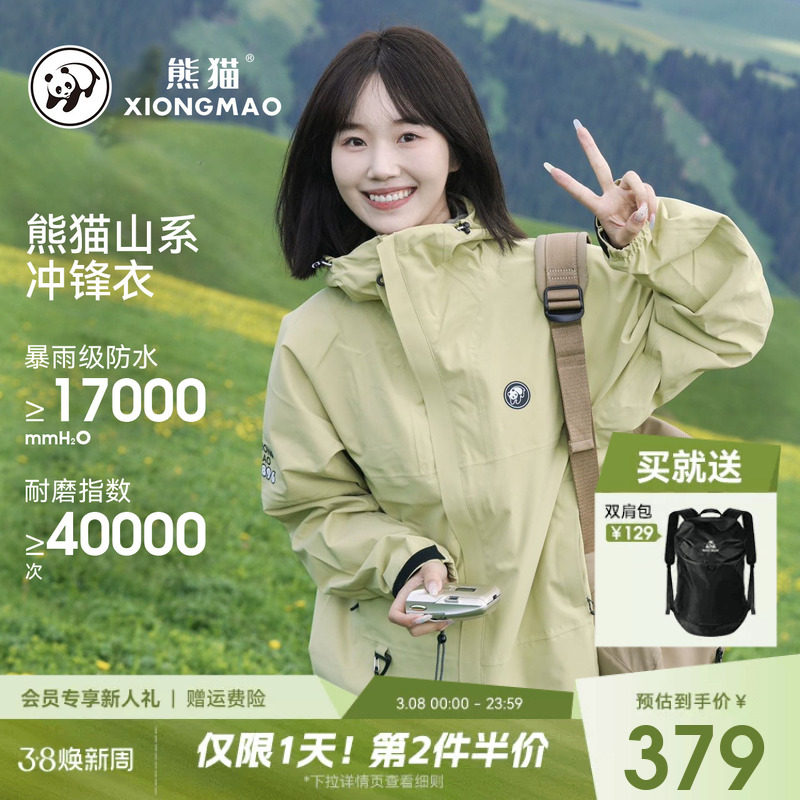 📚 蔡徐坤同款熊猫雨壳户外冲锋衣女装外套2026防风水旅行三防登山服