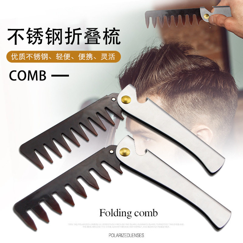 📚 方便携带梳男士金属油头小梳子背头宽齿纹理造型梳