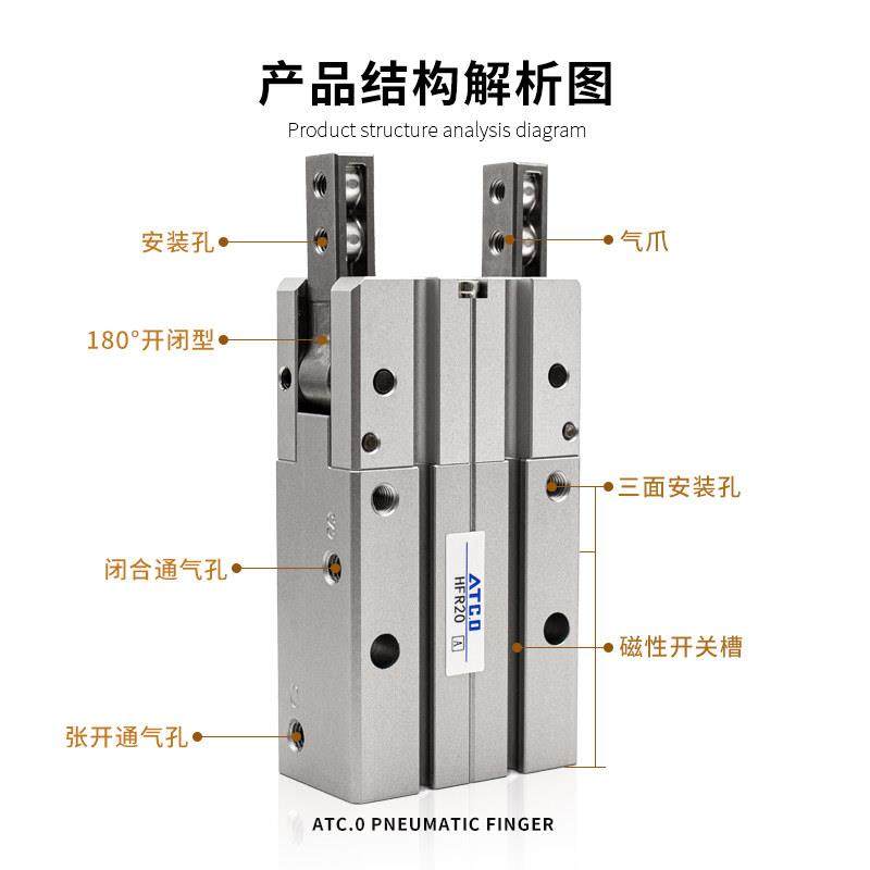 📚 180度开 闭型气动手指气缸HFR10/HFR16/20/25/32/N/H通孔