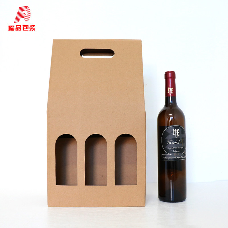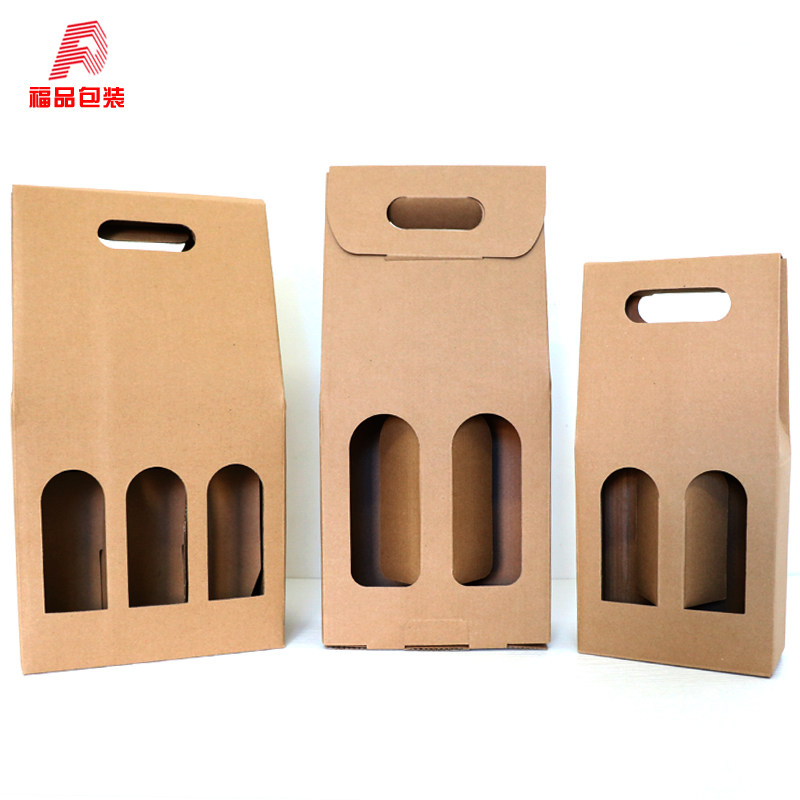 📚 现货红酒包装盒啤酒瓦楞彩盒牛皮单双支葡萄酒盒通用6支装手提袋