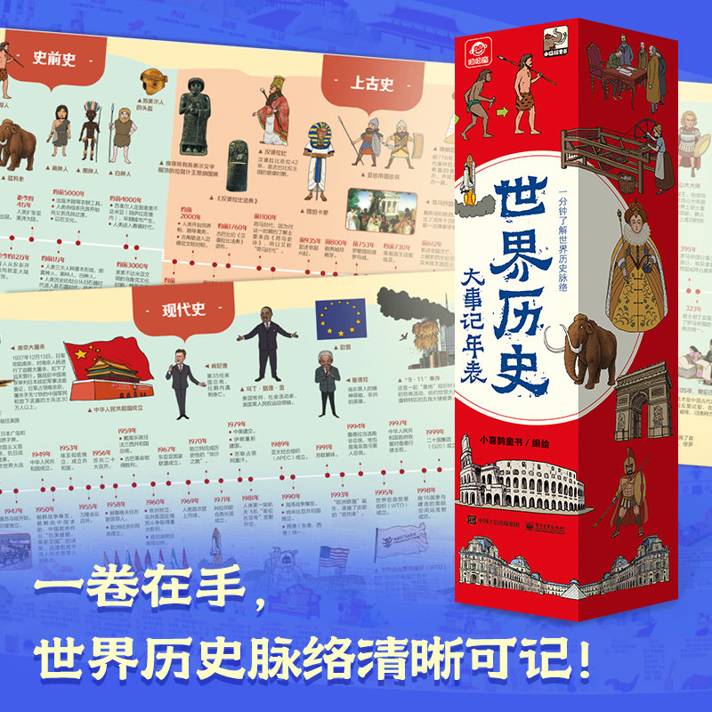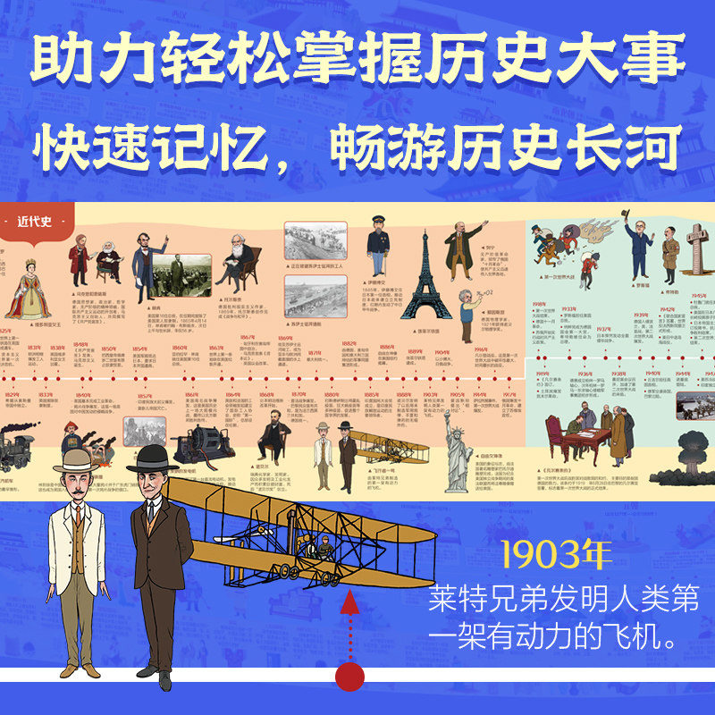 📚 一分钟了解世界历史脉络世界历史大事记年表长卷2米小学生初中历史画卷挂图知识考点世界历史大事件墙贴时间轴青少年课外书籍读物