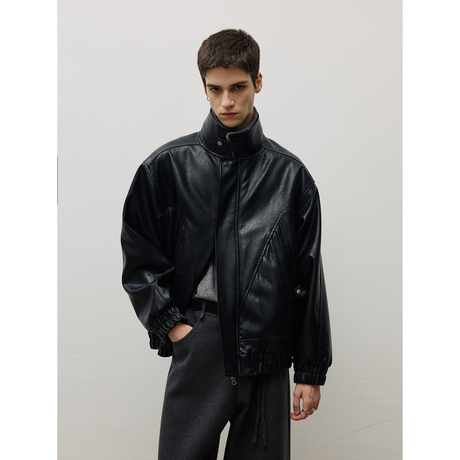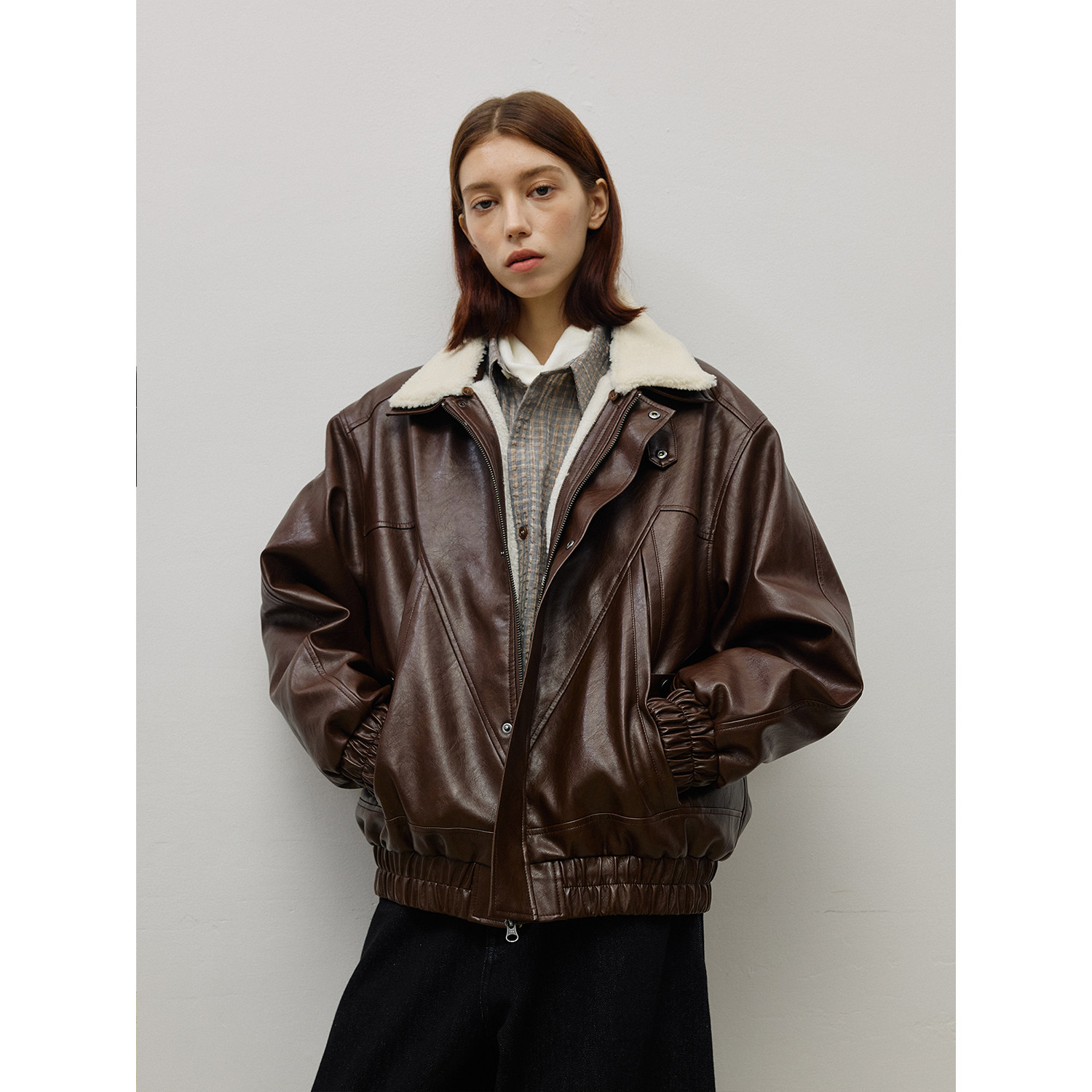 📚 LR MADE 25AW 可拆卸绒领 内里保暖仿羊羔绒 复古PU皮夹克外套