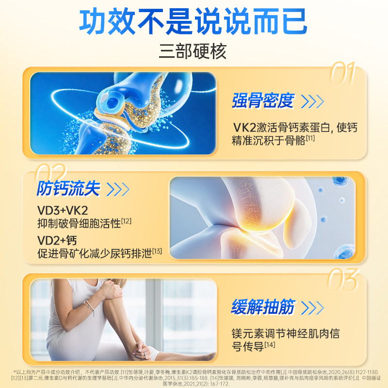 📚 【自营】双心中老年补充剂骨质疏松男女腿抽筋钙镁维生素d3k2片*3